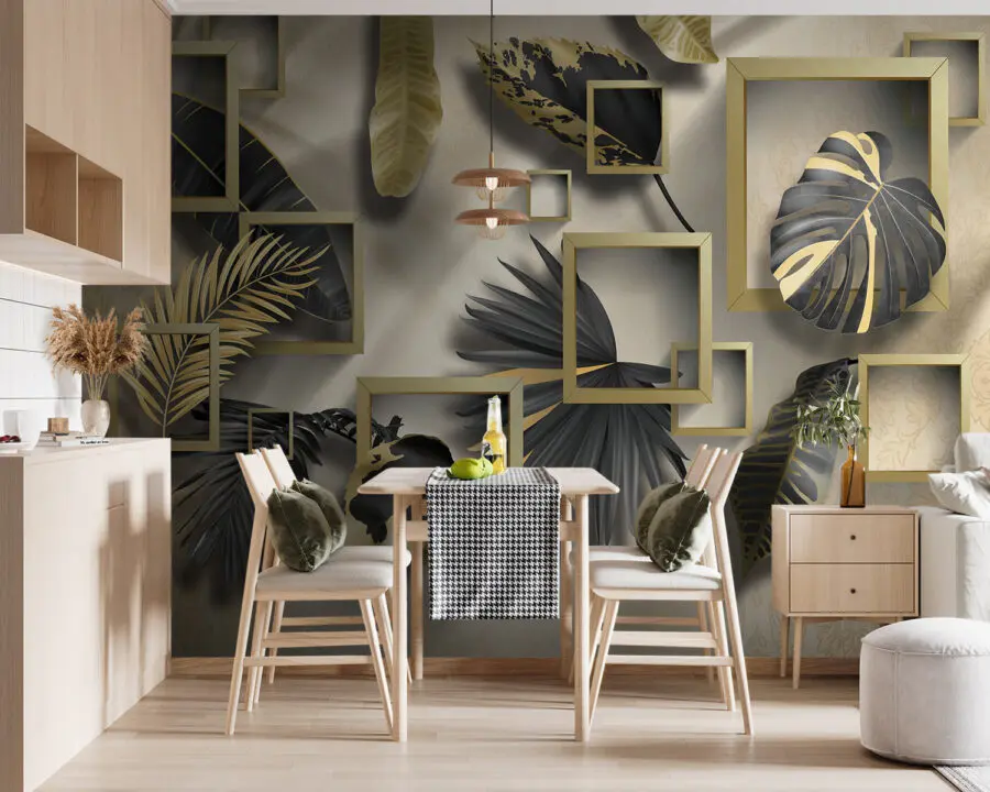 Transformeer je ruimte met deze prachtige muurschildering met zwarte en gele bladeren. Het is alsof je een frisse wind door je huis laat waaien. Stel je eens voor dat je een kamer binnenstapt waar opvallende ontwerpen je muren laten knallen en gesprekken en bewondering opwekken. Perfect voor gezellige avonden met vrienden of luie zondagen met een boek. De unieke geometrische patronen voegen diepte toe, waardoor elke ruimte ruimtelijker aanvoelt – wie wist dat bladeren dat konden? Een muurschildering als deze is niet alleen decor; het is een ervaring die zowel modern als organisch aanvoelt. Perfect voor iedereen die zijn sfeer wil verbeteren.