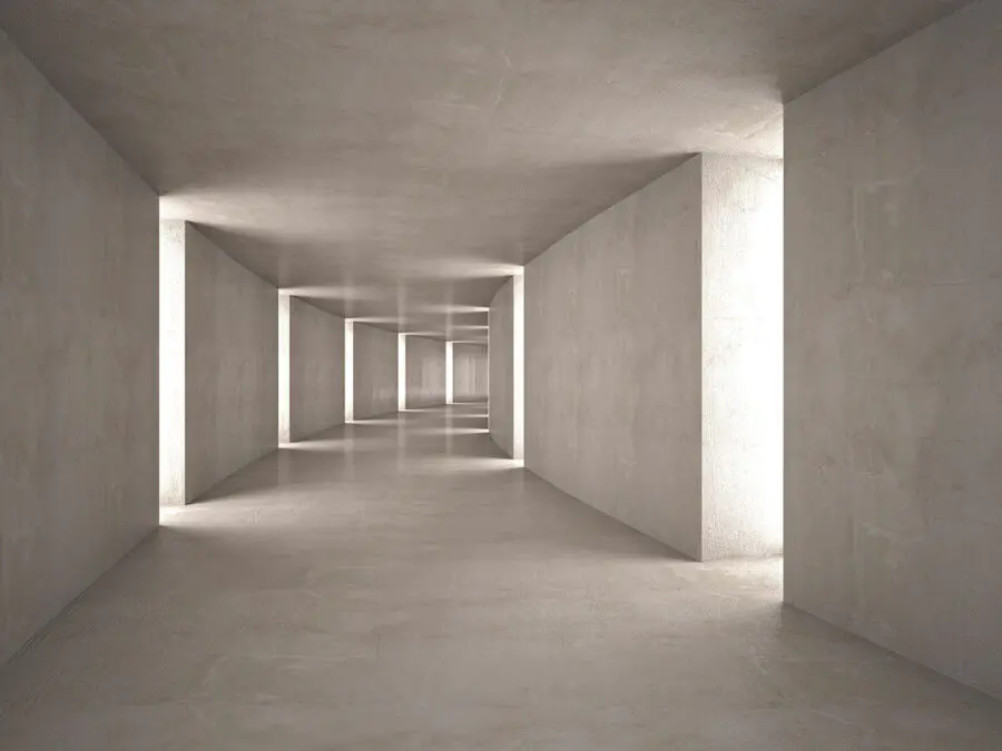 1 beoordeling voor Fotobehang Eindeloze betonnen hal met licht