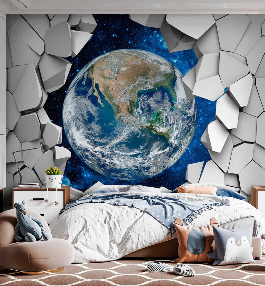 Hé, kijk eens naar deze te gekke muurschildering: “Witte zeshoek met zwarte randen. Het is alsof je een futuristische wereld binnenstapt – supergaaf, toch? Stel je voor in een kinderkamer – ze zouden zich voelen als ontdekkingsreizigers die elke ochtend door een portaal naar een andere dimensie stappen. De zeshoeken creëren een 3D-effect dat de kamer laat knallen!