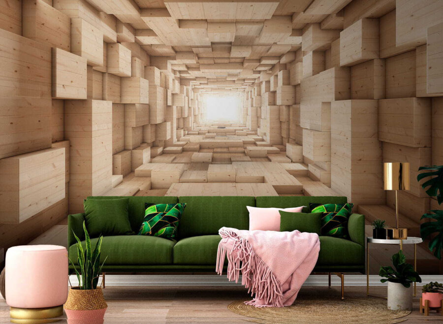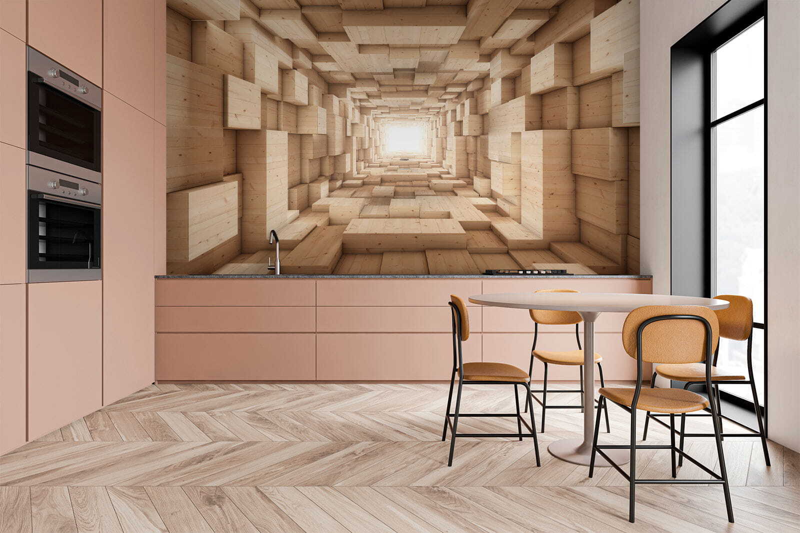 Hé, moet je dit zien! Deze muurschildering, “Wooden Box on a Wall”, is echt cool. Stel je voor dat je een kamer binnenstapt die eruitziet als een houten labyrint van 3D-blokken – het lijkt wel iets uit een avonturenspel. Perfect voor iedereen die van moderne, abstracte ontwerpen houdt. Het creëert een gevoel van diepte en beweging, bijna alsof de muur tot leven komt. Bovendien geven de natuurlijke houttinten een warm, gezellig gevoel. Ideaal voor het transformeren van je woonkamer, kantoor of elke andere ruimte die wel wat magie kan gebruiken. Serieus, je zult merken dat je er helemaal in opgaat, op de best mogelijke manier.