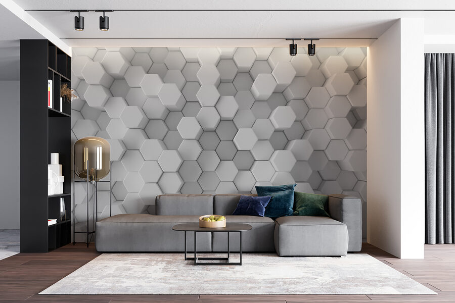 Tover een sobere kamer om in een modern meesterwerk met deze muurschildering met een prachtig zeshoekig geometrisch patroon in grijstinten. Stel je voor dat je een ruimte binnenloopt die zowel rustgevend als verfijnd aanvoelt – een leeg canvas dat nu beschilderd is met diepte en dimensie. Het is perfect voor een woonkamer of een gezellige leeshoek. Vrienden zullen zich afvragen of het kunst of behang is. En, laten we eerlijk zijn, wie houdt er niet van een beetje vriendelijke discussie over decor? Het subtiele spel van licht en schaduw maakt het eindeloos interessant en geeft je muren een unieke flair. Denk maar aan de complimenten die je krijgt!