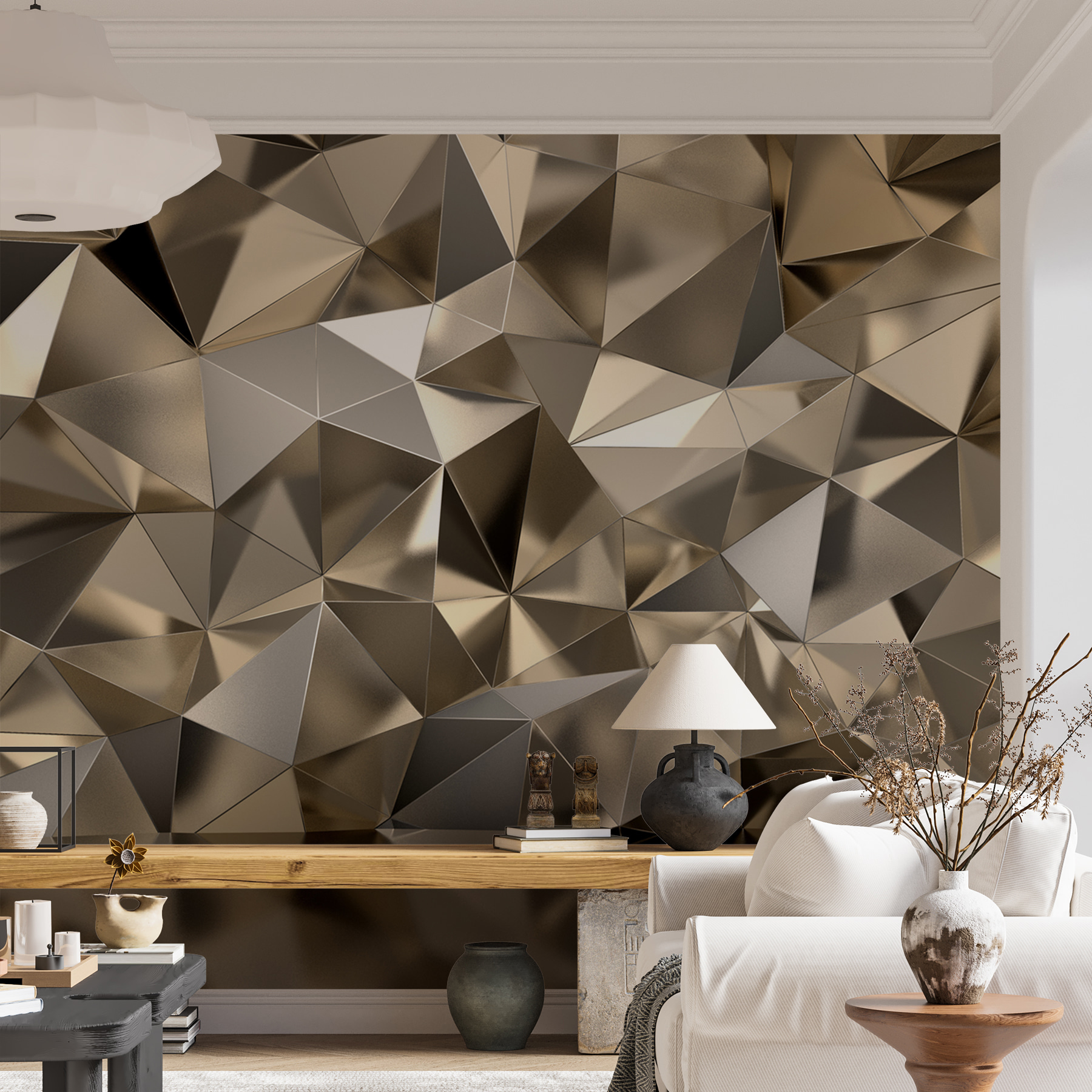 Maak van elke kamer een stijlvolle plek met deze opvallende geometrische muurschildering. Stel je voor dat je je ruimte binnenstapt en begroet wordt door een dans van vormen, waarbij elke hoek precies het juiste licht vangt. Het is alsof je een moderne kunstgalerie aan je muur hebt hangen, hoe cool is dat? Deze muurschildering is perfect voor kantoren, lounges of gezellige hoekjes en geeft een frisse uitstraling zonder overdreven te zijn. Vrienden zullen zich afvragen of je een ontwerper met smaak hebt ingehuurd! Of het nu gaat om een informeel gesprek of een diepgaande discussie, met deze achtergrond voelt elk moment een beetje speciaal. Maak je klaar om te genieten van de complimenten!
