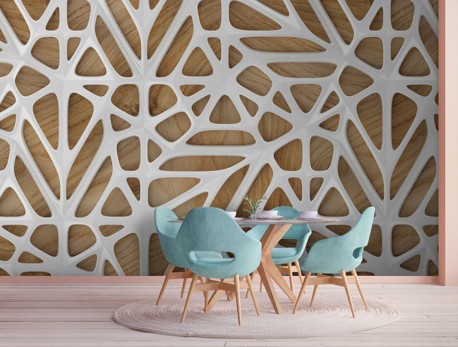 Denk je aan decor? Kijk dan eens naar deze muurschildering! Hij heet “Ingewikkeld wit patroon op hout”. Klinkt dat niet chic? Het is alsof je een 3D-puzzel op je muren aanbrengt. Denk aan meetkundeles, maar dan leuker en interessanter. Het coole is dat het een sticker is, dus je kunt hem loshalen en overal plakken. Geen geknoei met lijm of diepe zuchten om het op te knappen. Perfect voor die muurruimte die om aandacht vraagt. Stel je voor dat je lekker achterover zit met een kopje thee, elke hoek trekt je aandacht. Je hebt zojuist je kamer omgetoverd tot een moderne kunstgalerie. Omarm de magie en laat je creativiteit de vrije loop!