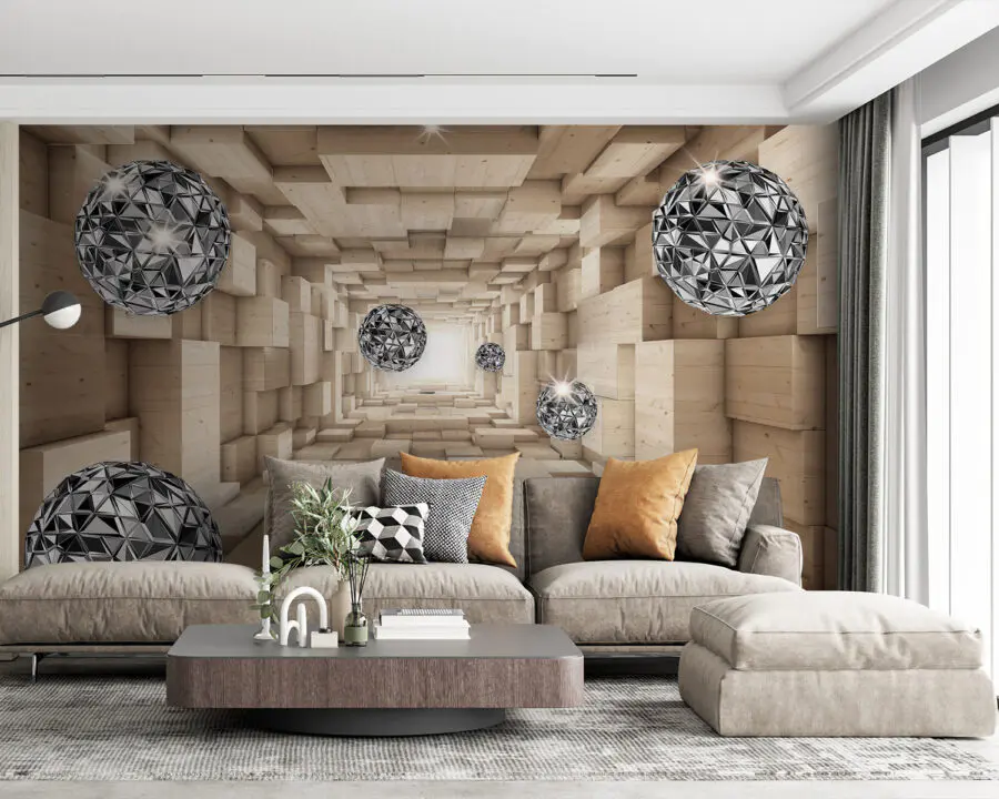 Stap een hele nieuwe wereld binnen met de Fotobehang Silver and Black Sphere. Stel je voor dat je door een ruimte loopt die aanvoelt alsof hij oneindig lang is! Die opvallende bollen lijken recht voor je te zweven en creëren een grillige illusie waardoor je gasten twee keer zullen kijken. De zachte houten achtergrond voegt een vleugje warmte toe en brengt de koele sfeer van de muurschildering in balans. Zie het voor je in een gezellige woonkamer of een trendy werkruimte – het verandert meteen de sfeer. Het is niet alleen decor; het is een ervaring. Laat je muren een verhaal vertellen en trek nieuwsgierige mensen aan!