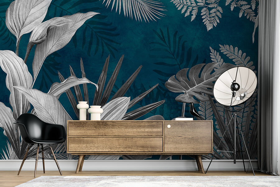 Perfect voor wie van de natuur houdt, maar niet per se een groene vingers heeft. De groenblauwe achtergrond voegt een geraffineerd tintje toe, waardoor de bladeren prachtig uitkomen. Het is niet zomaar een muurschildering, het is een ervaring. Geweldig om te mediteren, te ontspannen of gewoon even weg te dromen. Bovendien zullen gasten het supercool vinden. Wie wil er nou niet zijn eigen kleine tropische uitje thuis?