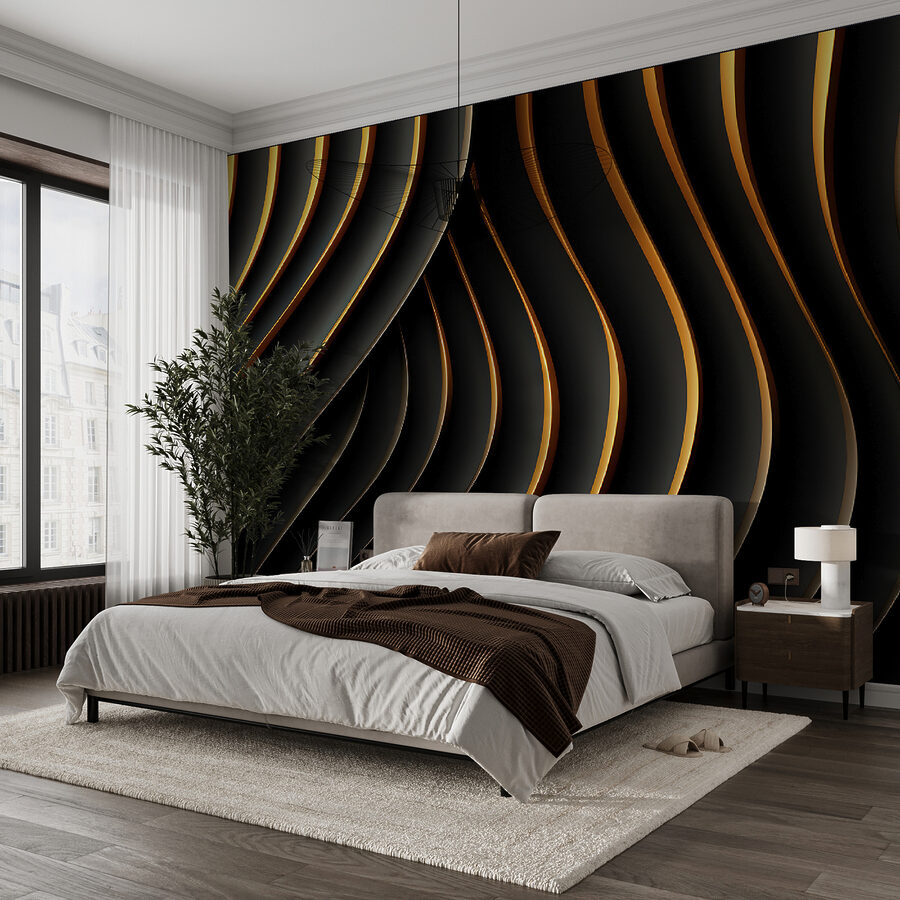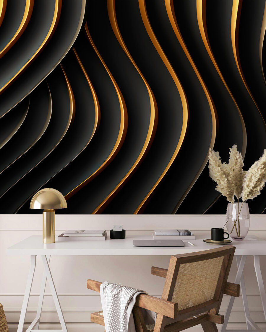 Transformeer elke ruimte met deze fascinerende muurschildering met vloeiende zwarte en oranje gebogen lijnen. Stel je voor dat je je kamer binnenstapt en meteen een energieverschuiving voelt – het is als een warme knuffel van je muren! De dynamische patronen nodigen uit tot beweging, dansen zachtjes over het oppervlak en trekken je naar binnen. Perfect voor een moderne sfeer, het kan een saaie ruimte veranderen in een trendy hangplek. Stel je een knus hoekje voor met een kop koffie en deze opvallende muurschildering als achtergrond, die je creativiteit stimuleert. Het is niet zomaar behang; het is een ervaring die staat te gebeuren. Maak je klaar om indruk te maken!