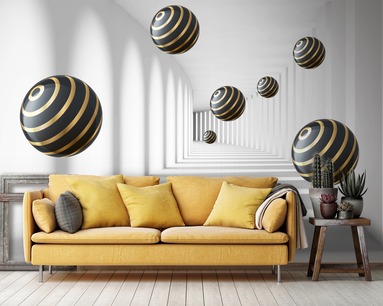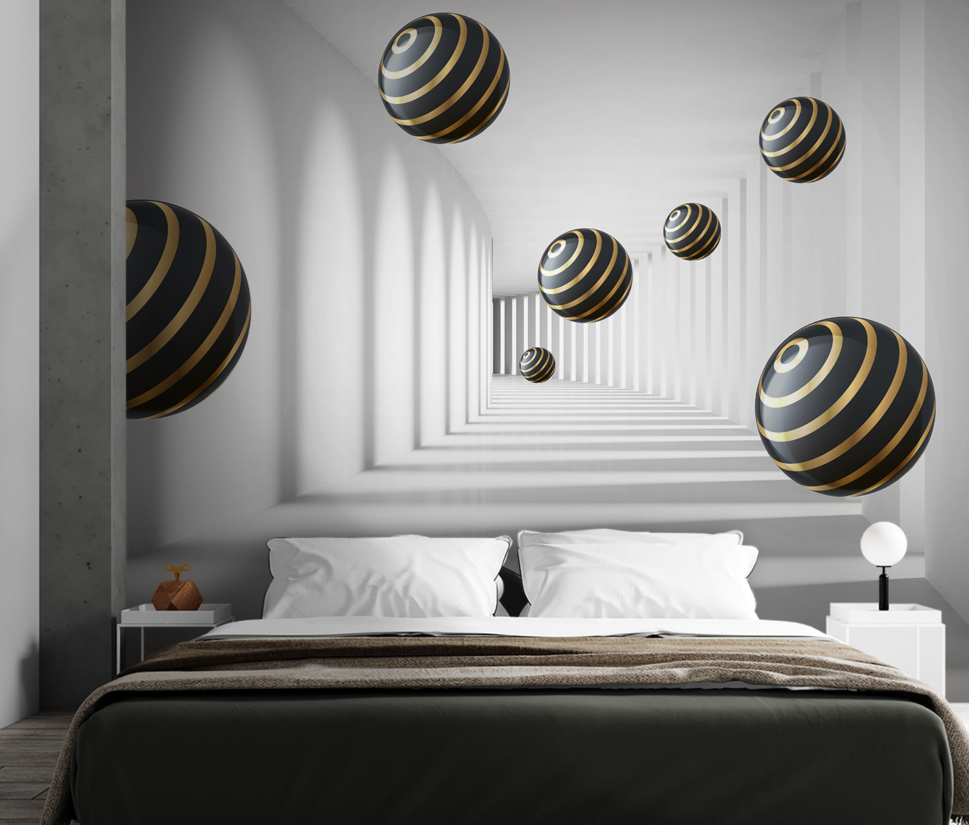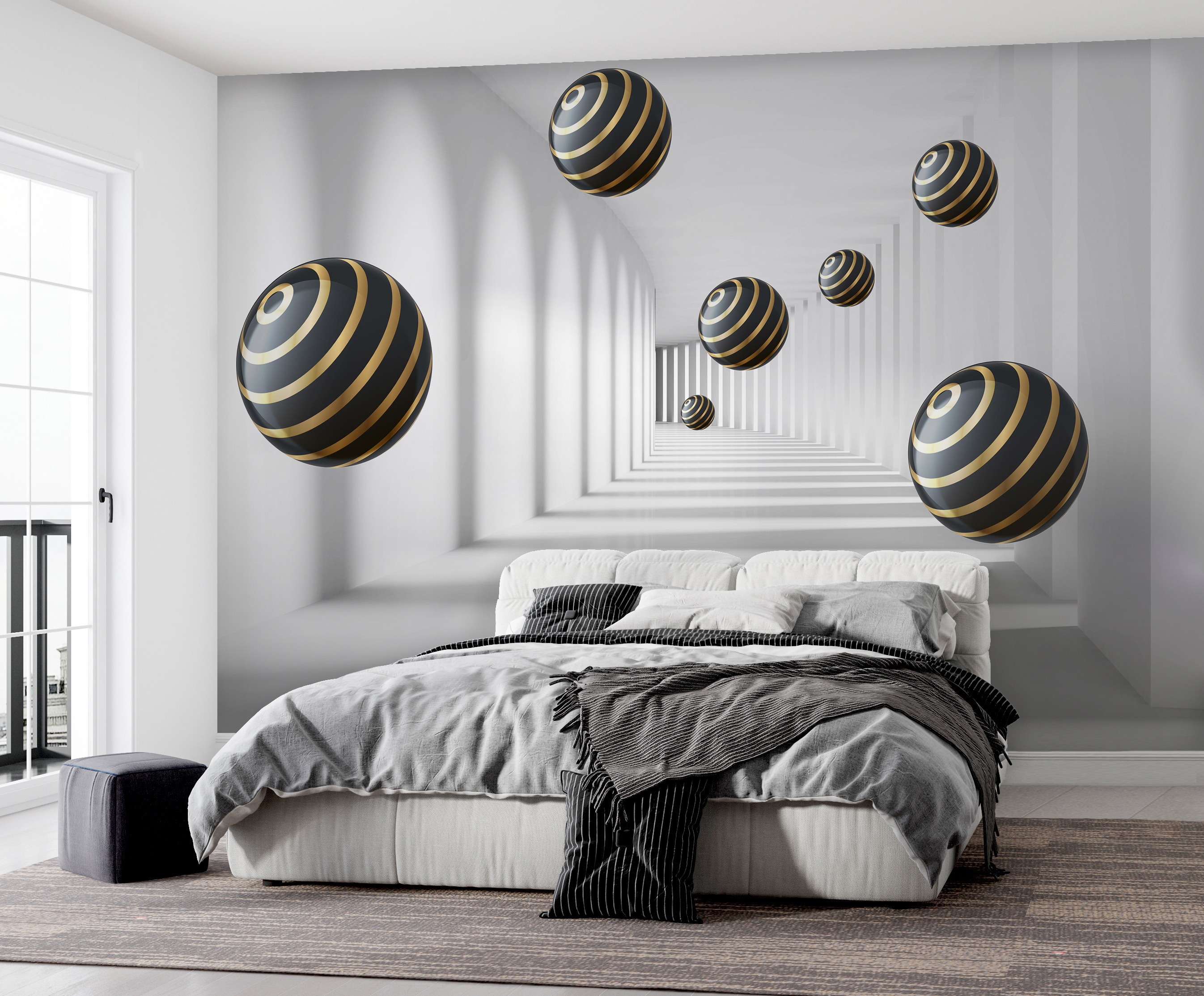 Stel je voor dat je een kamer binnenloopt en het gevoel hebt dat je meteen een andere dimensie binnenstapt. Dat is precies wat de “Fotobehang Striped Spheres Hover in White Corridor” doet. Het is een modern, bijna hypnotiserend ontwerp dat je het gevoel geeft dat je in een futuristische tunnel bent. De bollen, met hun strakke strepen, lijken moeiteloos te zweven en creëren een gevoel van diepte waardoor je ruimte groter lijkt. Het is net alsof je je eigen sci-fi filmset aan je muur hebt hangen!