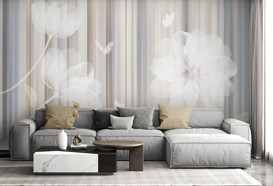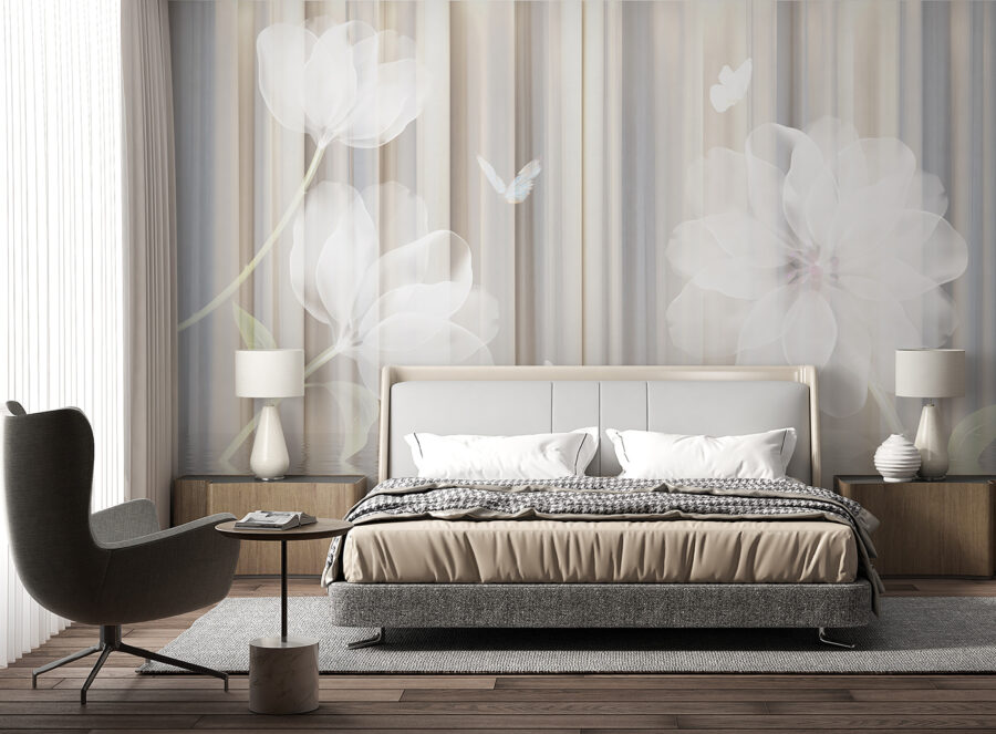 Verander elke kamer in een rustige ontsnapping met deze dromerige bloemenmuur met zachte bloesems en sierlijke vlinders. Het voelt alsof je een serene tuin binnenstapt, waar elke blik uitnodigt tot een moment van rust. Stel je voor dat je lekker wegkruipt met een goed boek, de zachte tinten omringen je, bijna als een knusse knuffel. Deze muurschildering is perfect voor een woonkamer of een rustig hoekje en voegt niet alleen schoonheid toe, maar creëert ook een ruimtelijke sfeer. Het is dat heerlijke tintje dat bezoekers laat stoppen, bewonderen en misschien zelfs een beetje laat dromen. Wie wist dat muren zulke mooie dagdromen konden inspireren?