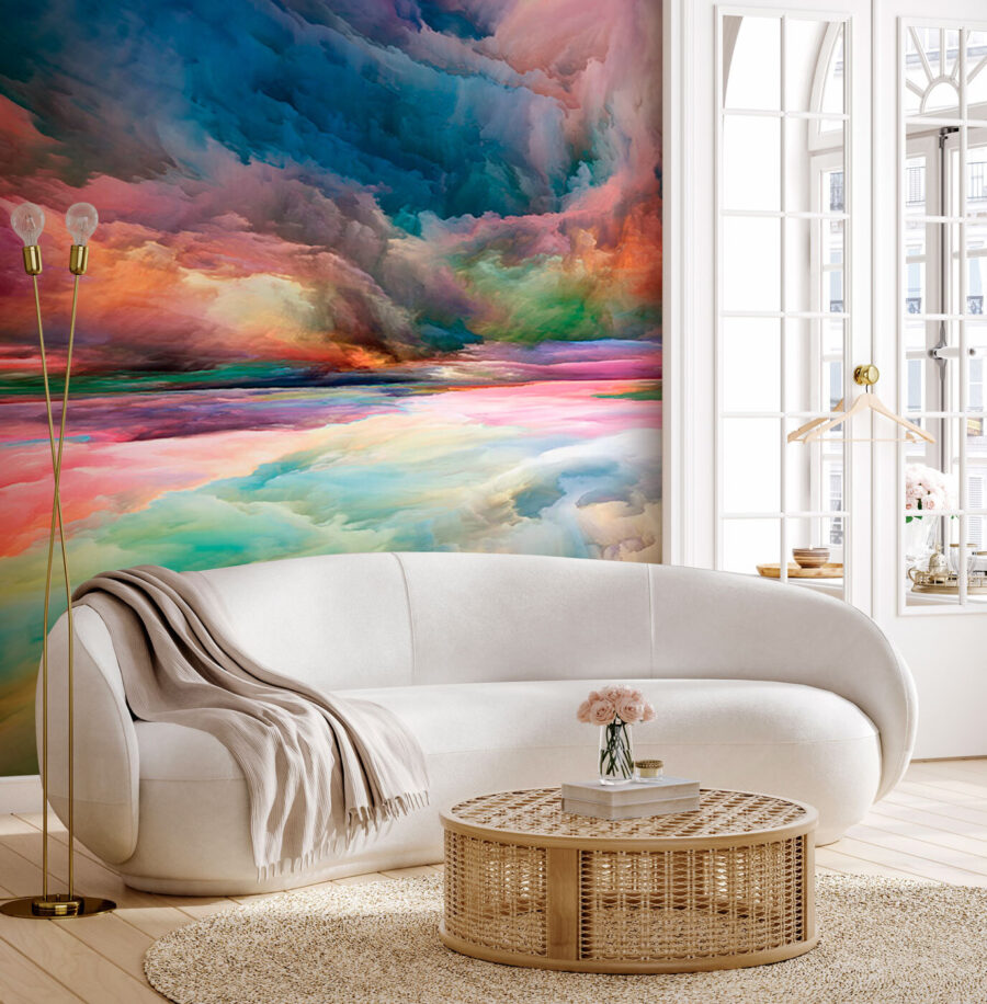 Stel je voor dat je een stukje hemel in je kamer hebt. Klinkt dromerig, toch? Deze muurschildering “Colorful Cloud Formation” zou wel eens kunnen helpen. Deze muurschildering met levendige kleuren is perfect voor kinderkamers en brengt leven en kleur in elke ruimte. Het 3D-effect? Helemaal betoverend! Stel je voor dat je kleintjes in slaap vallen onder een fantastische hemel of dat je gasten binnenkomen en even stilstaan, misschien zelfs hijgen, bij de schoonheid. Het is een soort canvas van de hemel dat het licht vangt en je muur transformeert – erg magisch, als je het mij vraagt. Of je nu je speelkamer omtovert in een wolkenrijk of een uitbarsting van kleur toevoegt aan je studeerkamer, het zorgt er zeker voor dat ruimtes levendiger en o zo speciaal aanvoelen.
