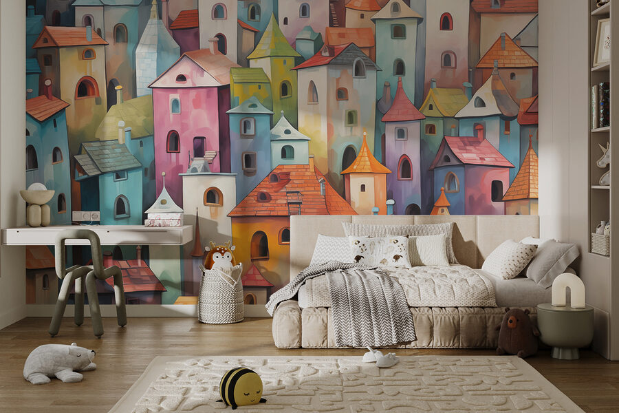Tover elke muur om in een levendig straatbeeld met deze muurschildering van kleurrijke gebouwen. Stel je voor dat je een grillig dorp binnenstapt waar elk gebouw zijn eigen verhaal vertelt, met levendige kleuren die dansen in het licht. Stel je een weekendje samen met vrienden voor waar het gelach weerklinkt terwijl ze de speelse charme van dit kunstwerk bewonderen. Het is alsof je een uitbarsting van vreugde in je woonkamer brengt – of keuken, of waar je maar wilt! Perfect om een saaie ruimte op te vrolijken, het voegt een vleugje magie toe dat iedereen aan het lachen houdt. Wie zou zich niet geïnspireerd voelen door een vleugje kleur?