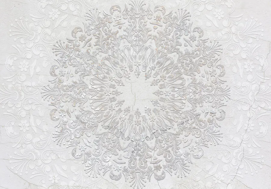 Stel je voor dat je wat extra elegantie in je ruimte brengt met deze prachtige muurschildering. Het witte bloemmotief op een helderwitte achtergrond is als een zacht, ingewikkeld kantpatroon dat je muren siert. Het is perfect voor mensen die de schoonheid van subtiele details waarderen en een vleugje verfijning willen toevoegen zonder een kamer te overweldigen.