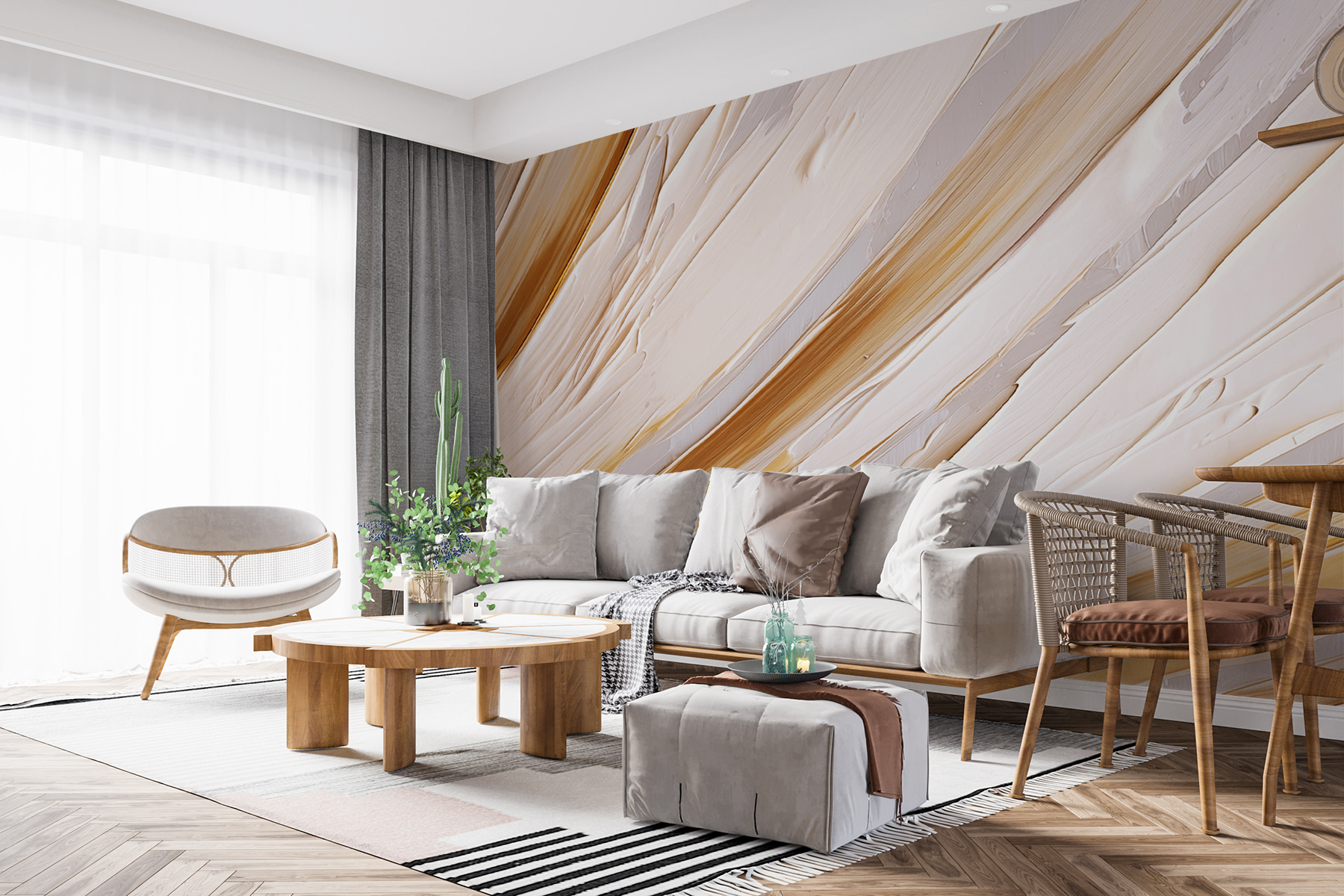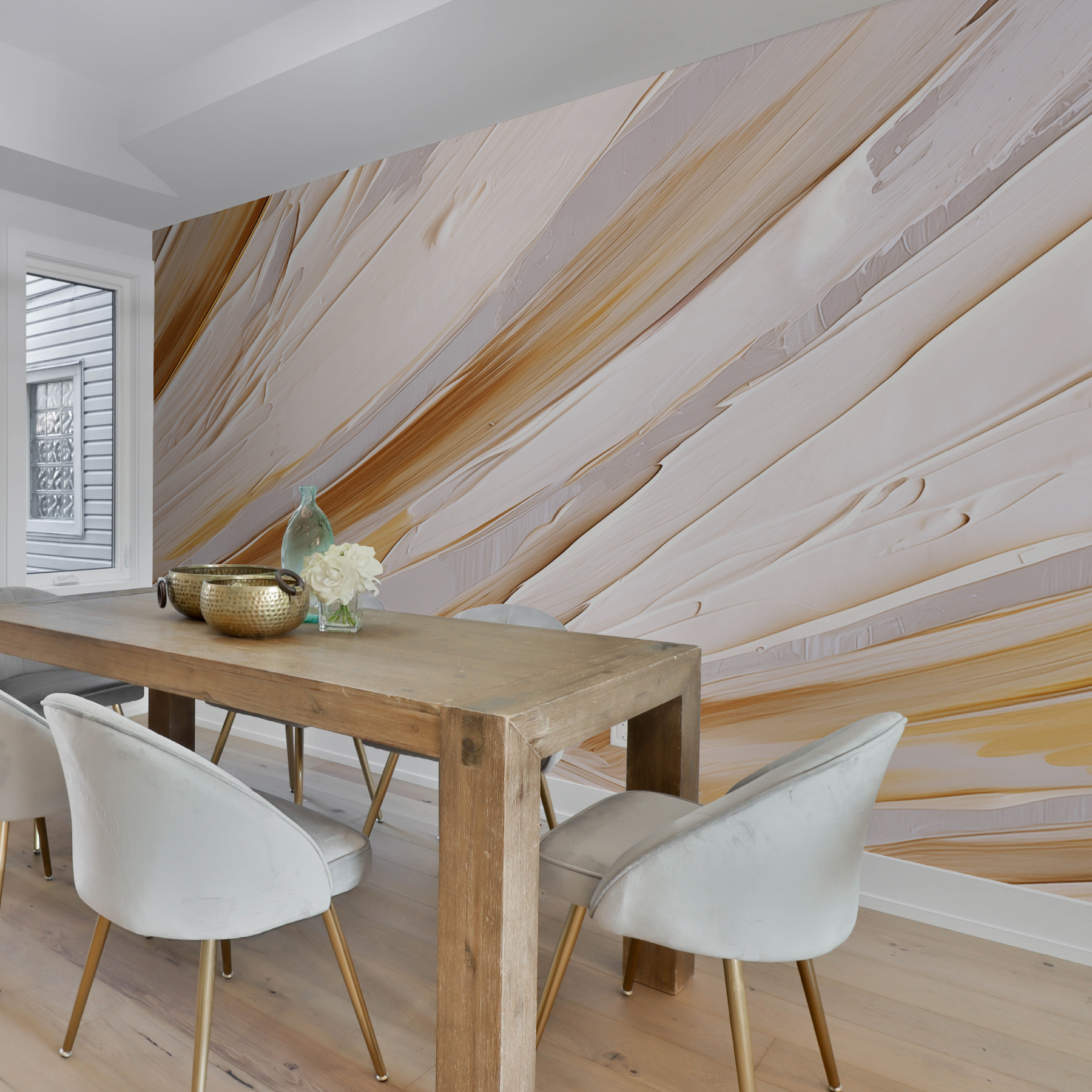 Verander een saaie ruimte in een gezellig toevluchtsoord met deze prachtige muurschildering, “Creamy Strokes of Artistic Expression”. Stel je voor dat je een kamer binnenloopt waar zachte tinten samensmelten als slagroom en zachtjes dwarrelen met warme ondertonen. Het is niet zomaar muurkunst; het is als een knuffel voor je huis. Deze muurschildering kan een gevoel van rust en creativiteit brengen, waardoor het perfect is voor een leeshoekje of een creatieve hoek. Vrienden zullen je misschien vragen wie je decorateur is, terwijl jij gewoon glimlacht en zegt dat het allemaal om de kunst gaat (en misschien een beetje toeval). Perfect voor diegenen die schoonheid waarderen zonder poespas, dit stuk voelt zowel eenvoudig als verfijnd, waardoor elke blik een klein moment van vreugde wordt.