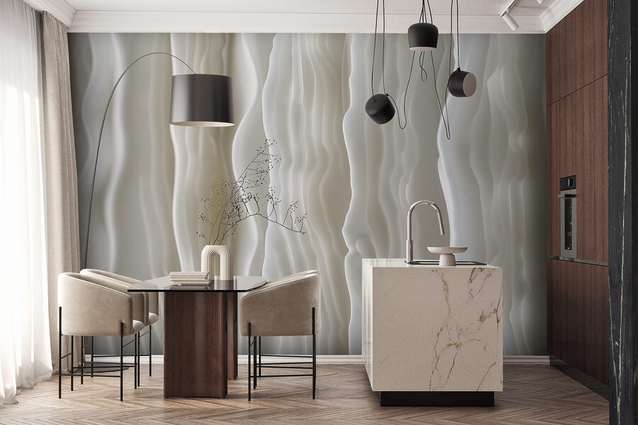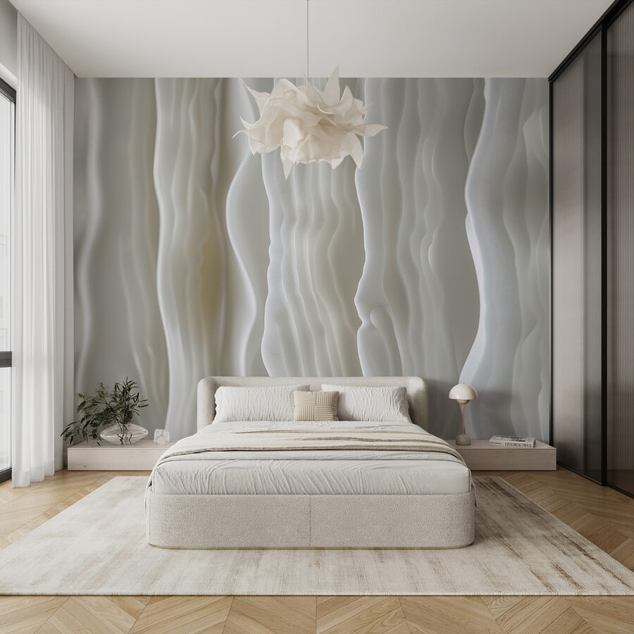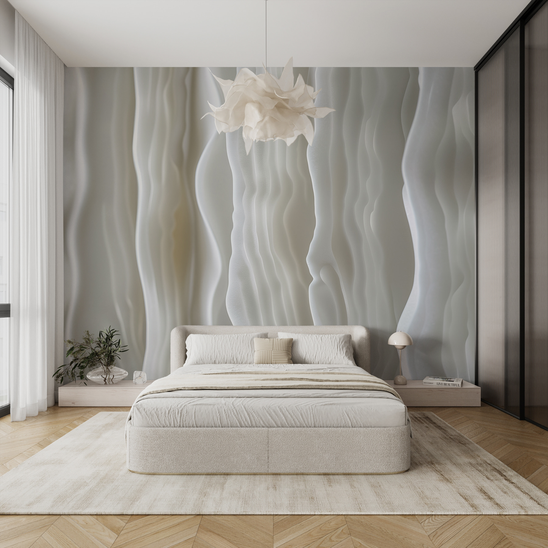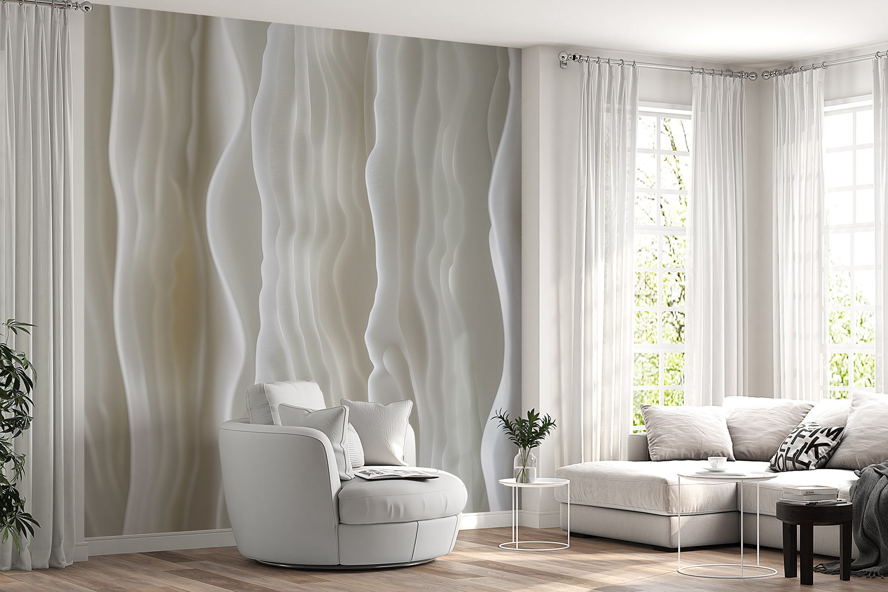 Stel je eens voor dat je een kamer binnenstapt waar de muren lijken te rimpelen als een zachte bries over een kalme zee. Maak kennis met de muurschildering “Undulating White” – een verbluffende dans van zachte abstracte golven die elke ruimte omtovert tot een moderne oase. Die vloeiende lijnen! Ze voegen diepte en een bijna magische rust toe. Perfect voor een gezellig hoekje of dat chique nieuwe kantoor, het fluistert verfijning met een vleugje eigenzinnigheid. Het is net alsof je thuis een mini-kunstgalerie hebt. Vrienden vragen je misschien wel: “Heb je verbouwd?” Lach gewoon en laat de golven het woord doen.