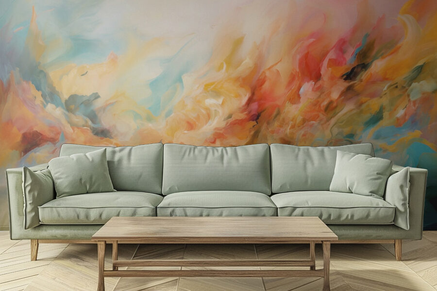 Transformeer elke ruimte met deze prachtige muurschildering, “Kleurrijk schilderij van een wolk verf”. Stel je voor dat je je kamer binnenstapt en het gevoel hebt dat je in een dromerig, abstract paradijs bent beland. Deze prachtige kleurenpracht danst over de muur en nodigt uit tot creativiteit en een gevoel van rust. Het is als een zachte werveling van aquarelgevoelens, die een zachte, vrolijke sfeer brengt die zelfs de saaiste dagen kan opfleuren.