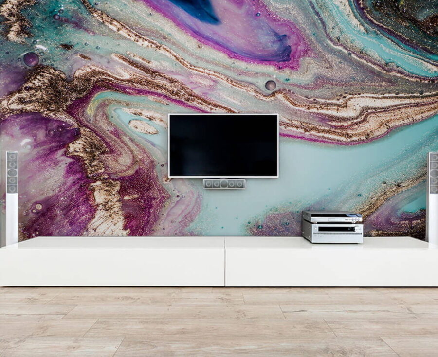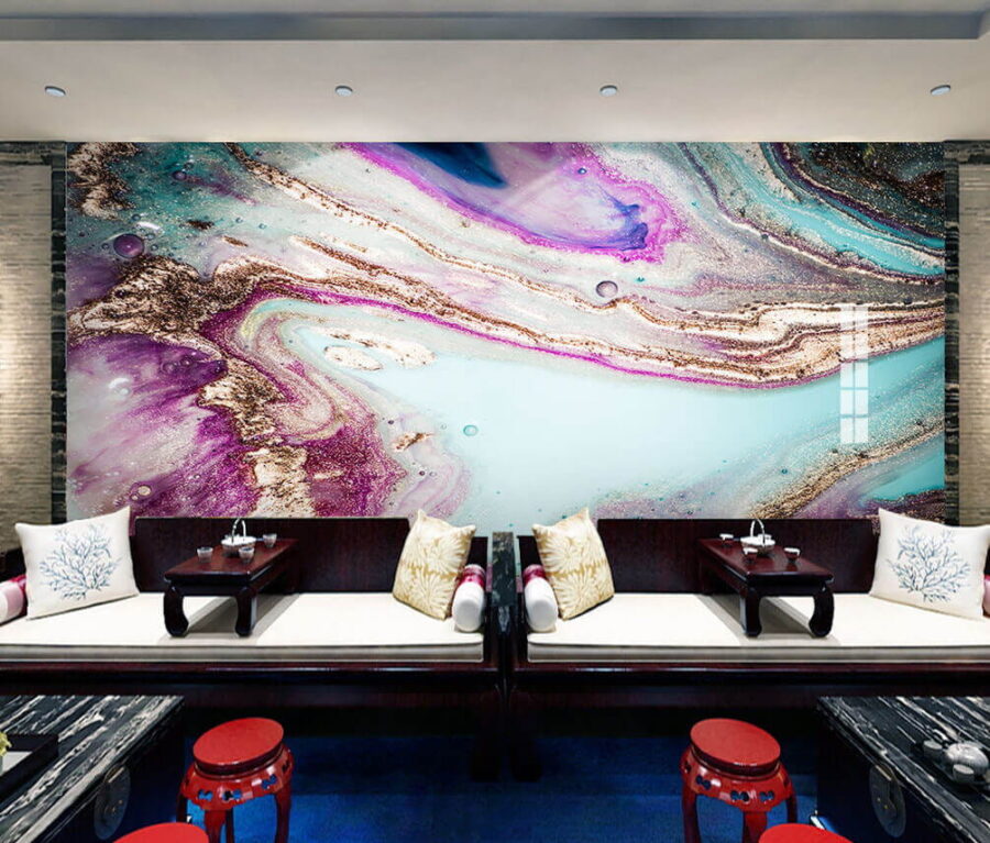 Transformeer elke kamer met deze muurschildering met abstracte wervelingen in levendige kleuren. Stel je voor dat je een wereld binnenstapt waar blauw, paars en aardetinten samen dansen. Het is alsof een zonsondergang en oceaangolven een creatief confettifeest hebben gehouden! Stel je voor dat je dag na dag langsloopt en nieuwe patronen en tinten ontdekt – elke blik brengt een nieuwe verrassing. Perfect voor die muur die wel wat pit kan gebruiken of een gezellig leeshoekje. Of het nu een rustgevende achtergrond is of een opvallend middelpunt, deze muurschildering brengt leven en opwinding in elke ruimte. Al inspiratie opgedaan?