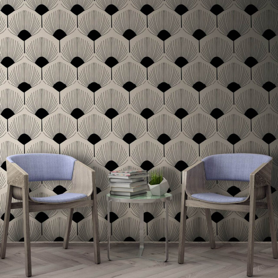Het geometrische ontwerp is perfect voor een woonkamer of een gezellig leeshoekje en zorgt voor een chique sfeer zonder al te druk te zijn. En hé, het is gedurfd maar niet opdringerig, waardoor je een stijlvolle achtergrond hebt voor alles, van boekenclubs tot luie zondagen. Een vleugje verfijning, een sprankje plezier – wie had gedacht dat een muurschildering zoveel vreugde kon brengen?