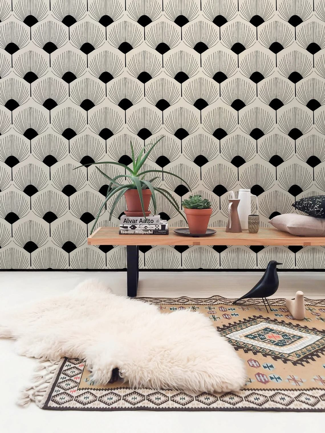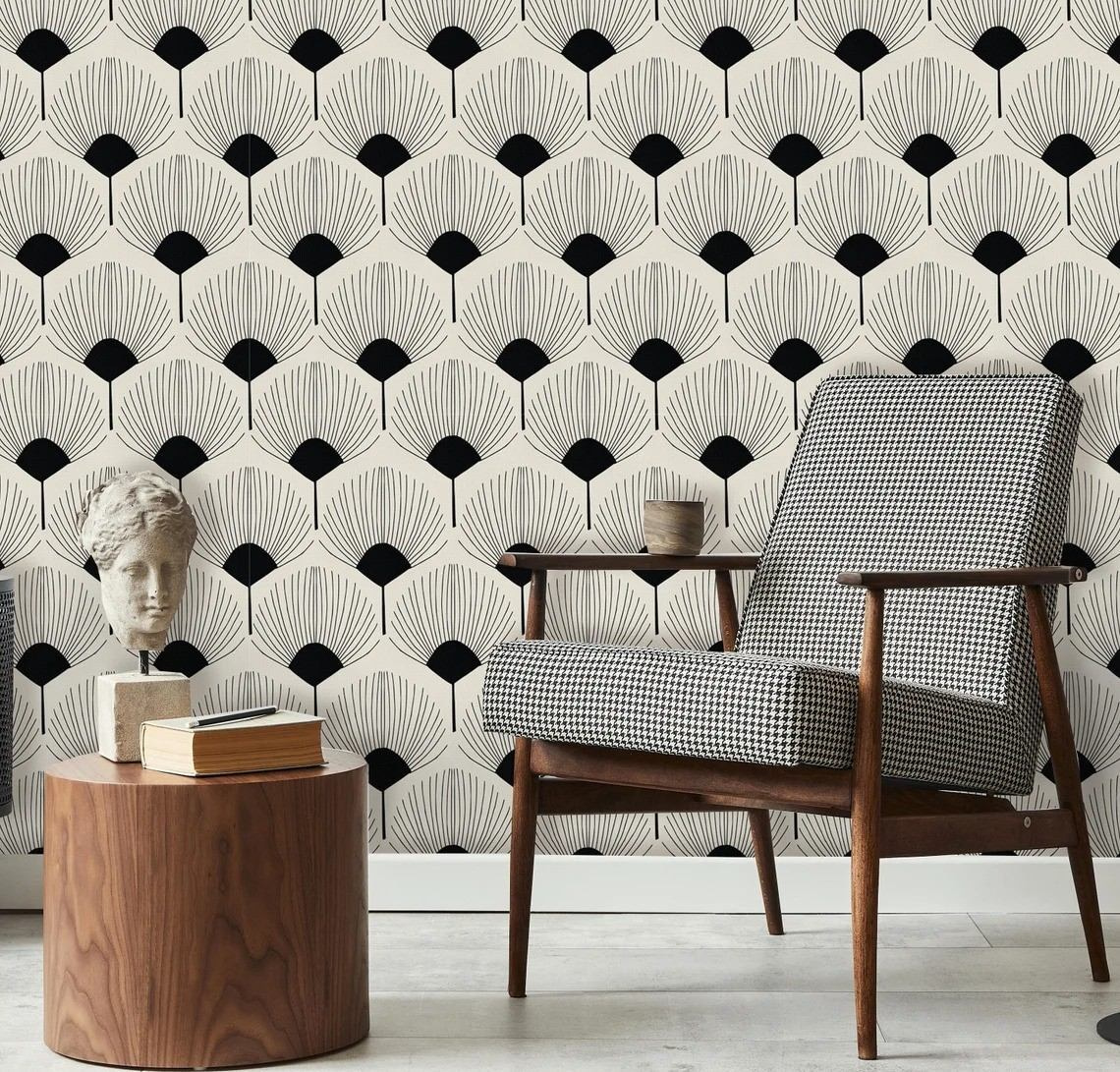 Het geometrische ontwerp is perfect voor een woonkamer of een gezellig leeshoekje en zorgt voor een chique sfeer zonder al te druk te zijn. En hé, het is gedurfd maar niet opdringerig, waardoor je een stijlvolle achtergrond hebt voor alles, van boekenclubs tot luie zondagen. Een vleugje verfijning, een sprankje plezier – wie had gedacht dat een muurschildering zoveel vreugde kon brengen?