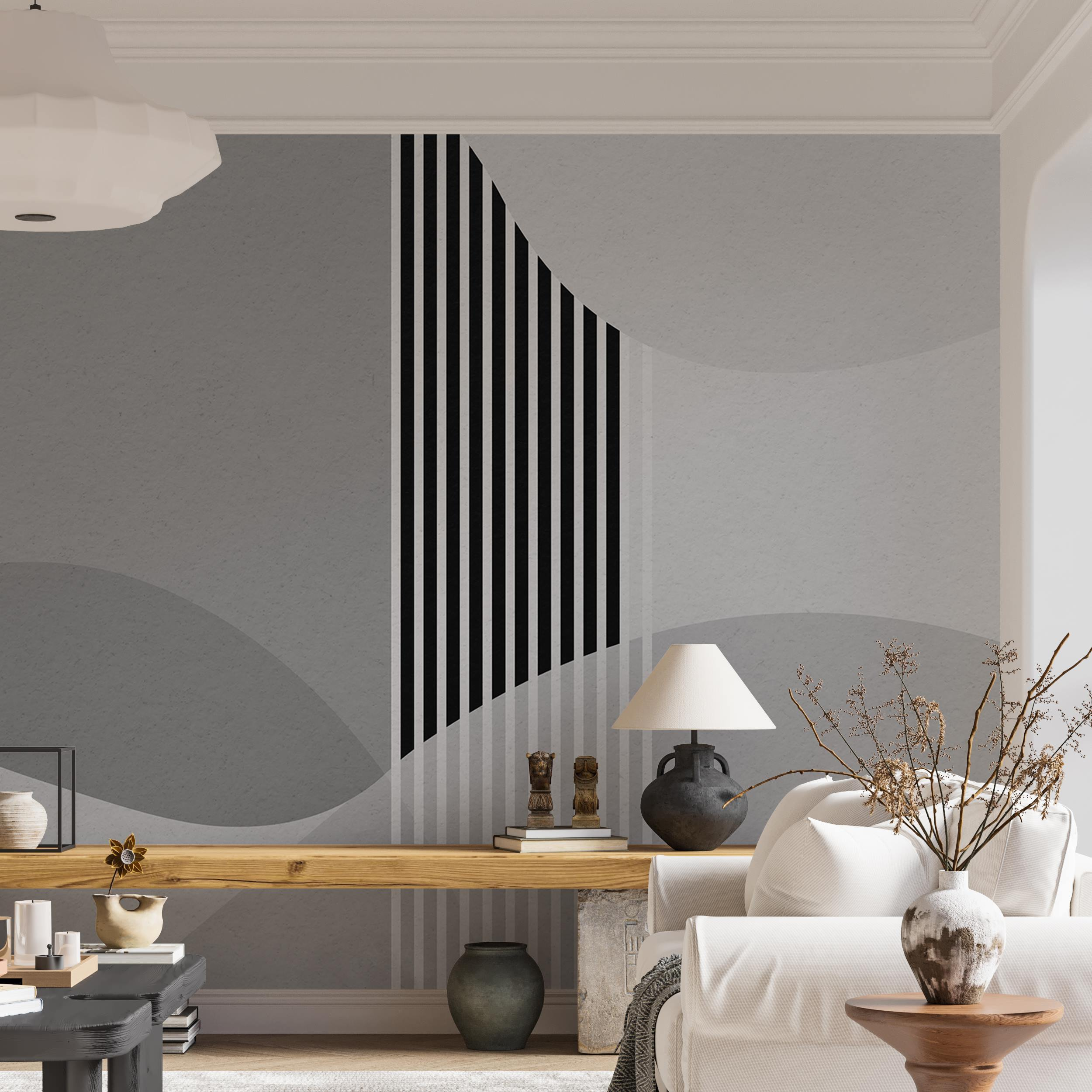 Bekijk deze opvallende muurschildering “Black and White Striped Wall”. Met zijn gedurfde geometrische ontwerp is hij perfect voor iedereen die houdt van een beetje extravagantie in zijn inrichting. Serieus, wie houdt er niet van een goede streep? De zwart-wit mix creëert een moderne maar tijdloze look. Stel je voor: in je woonkamer, waar je de sfeer van een kunstgalerie krijgt zonder het verwaande personeel. Of misschien in je kantoor om alles strak en stijlvol te houden – beslist geen saaie beige muren. Het is ideaal als je een statement wilt maken of je ruimte wilt opleuken met iets funky. De abstracte vormen en contrasterende lijnen houden je geïntrigeerd en kunnen zelfs je gasten aan het praten krijgen (op een goede manier!). Maak van je muur een conversatiestarter; dat is minder gênant, toch? Dus als je een vleugje chique drama aan je huis wilt toevoegen, dan is deze muurschildering iets voor jou.