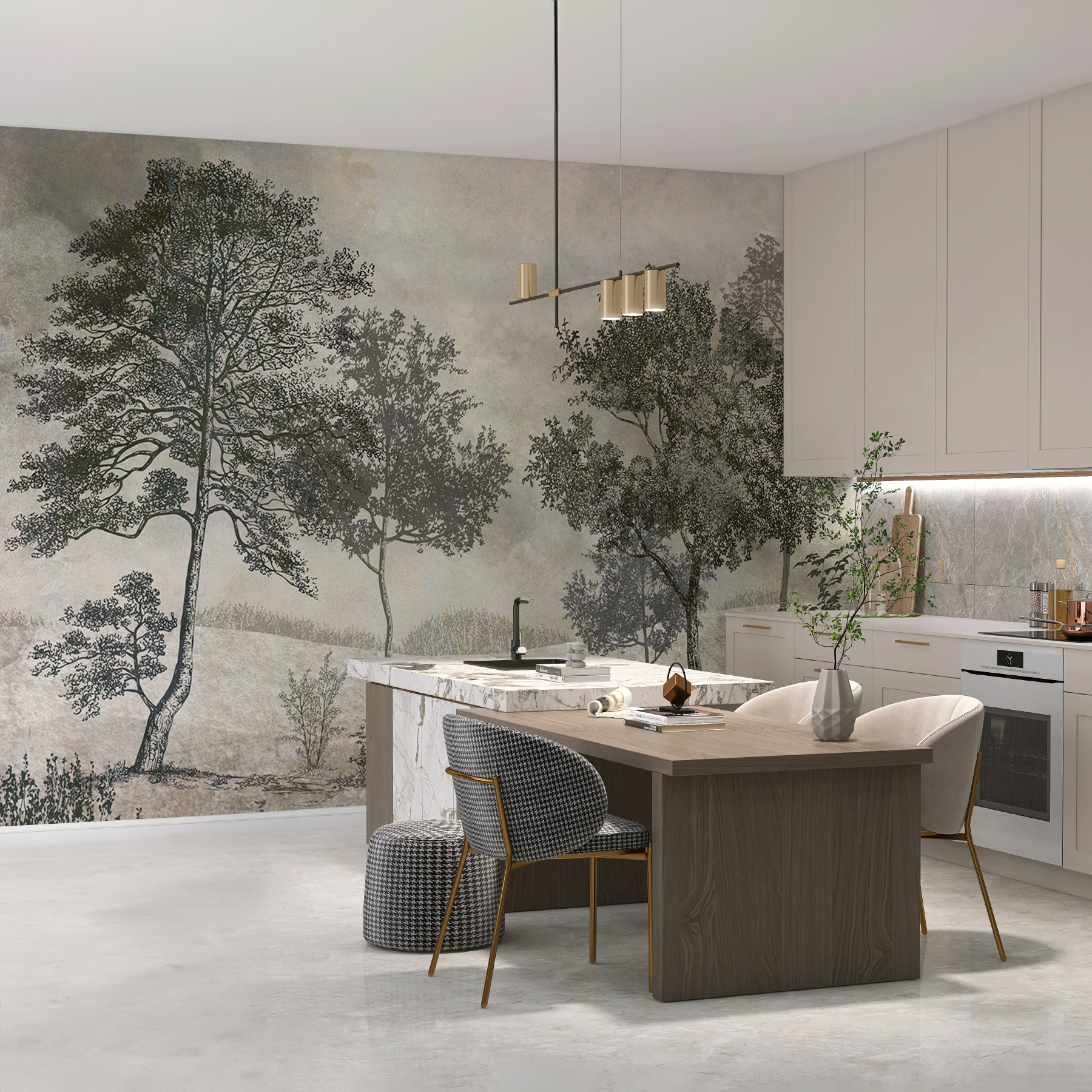 Stel je voor dat je tot rust komt in een kamer die sereniteit uitstraalt. De muurschildering “Geëtste bomen in een sereen landschap” is als een zachte knuffel van de natuur. Je hebt die betoverende charme van hout met een eigentijdse twist – abstract, maar toch op de een of andere manier zo heerlijk vertrouwd. Stel je voor: zachte tinten, ingewikkelde lijnen die sierlijke bomen uitbeelden en je ruimte onmiddellijk omtoveren tot een oase van rust. Het is net alsof je ontsnapt naar een dromerig bos, zonder een tas te hoeven pakken. Perfect voor luie zondagmiddagen of als je even op adem wilt komen. En eerlijk is eerlijk, het heeft die onweerstaanbare “waar heb je dat vandaan?” vibe. Geef je muren een vleugje rust – ze verdienen het.