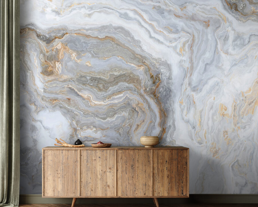 Transformeer uw ruimte met deze prachtige muurschildering, met abstracte wervelende patronen in zachte, rustgevende tinten. Het is als een zacht gefluister van de natuur vermengd met een vleugje marmeren elegantie. Stel u deze schoonheid voor als achtergrond voor uw gezellige leeshoek of als die perfecte accentmuur – u weet wel, die muur die smeekt om een beetje pit! Het is niet alleen kunst, het is een ervaring. Stel je voor dat je thee drinkt terwijl je naar die dromerige wervelingen staart en je laat overspoelen door de rustige vibes. Bovendien is het precies de juiste hoeveelheid chic zonder dat het te geforceerd overkomt. Ideaal voor iedereen die zijn huis als een serene toevluchtsoord wil laten aanvoelen, zelfs als het alleen maar in de woonkamer is. Creëer sfeer, stimuleer gesprekken en geniet van de rustgevende atmosfeer die deze muurschildering met zich meebrengt. Wie had gedacht dat woninginrichting zo vrolijk kon zijn?