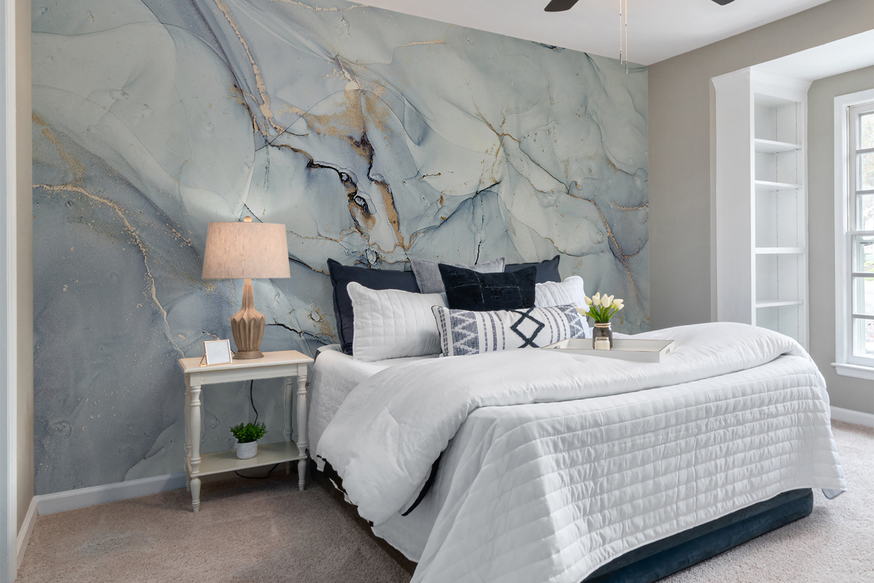 Transformeer elke kamer met deze prachtige abstracte marmeren muurschildering, waar wervelende patronen en subtiele kleuren een sfeer creëren die zowel rustgevend als stijlvol is. Het voelt alsof je in sereen water kijkt, of misschien een dromerige dag doorbrengt met een wandeling door een mistig landschap. Stel je voor dat je koffie drinkt op een luie zondagochtend en dat je ruimte aanvoelt als een gezellig toevluchtsoord. Het is perfect om een statement te maken of gewoon een vleugje elegantie toe te voegen. Geweldig voor woonkamers, slaapkamers of zelfs die ene muur die gewoon om aandacht vraagt. Met deze muurschildering zijn muren niet zomaar muren – ze maken deel uit van de ervaring!