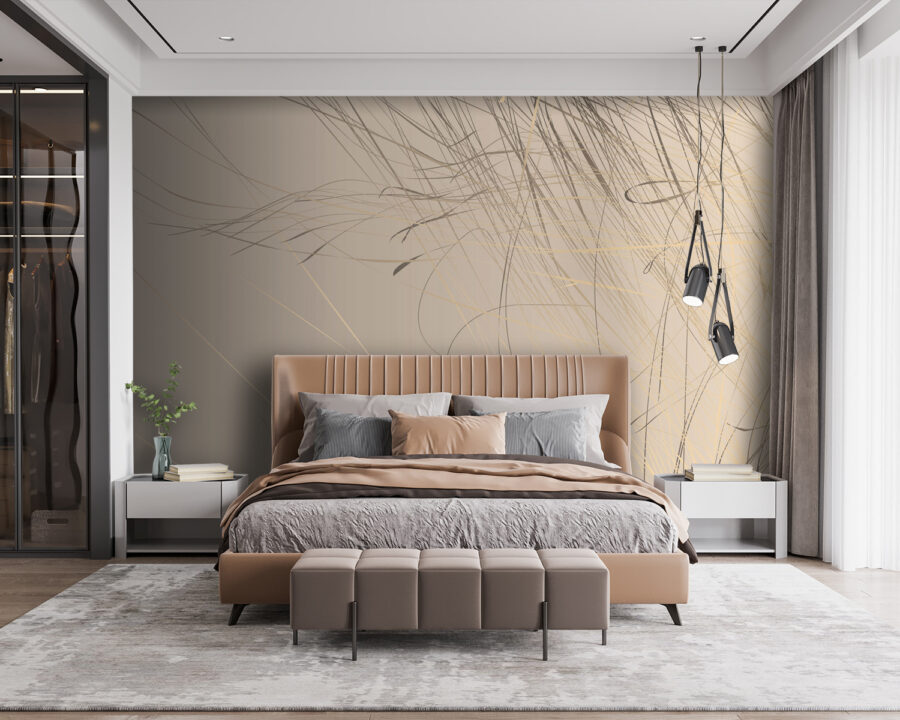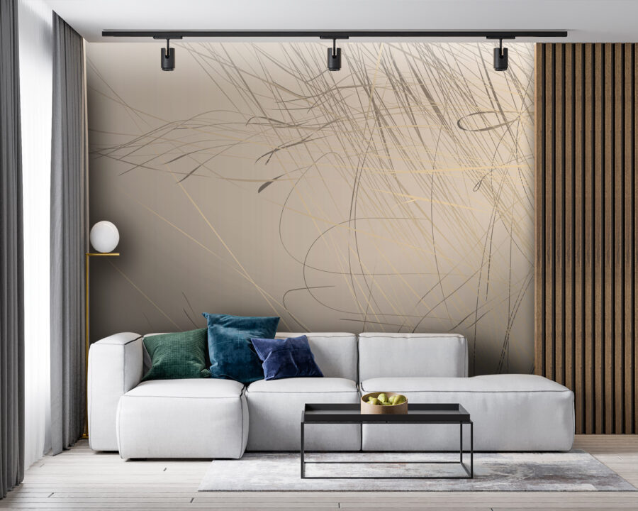 Stel je voor dat je een kamer binnenloopt en dit op de muur ziet – “Wow”, toch? Deze muurschildering, met abstracte lijnen die dansen op een zachte beige achtergrond, straalt bijna elegantie uit. Het is precies het soort kunstwerk dat niet schreeuwt, maar wel opvalt. Perfect voor iedereen die gewone muren te gewoon vindt. Je zou het prachtig vinden in een woonkamer of zelfs een chique studioruimte. Het is alsof je een vleugje creativiteit toevoegt zonder een verfkwast op te tillen. Stel je een late namiddag voor, het zonlicht dat naar binnen druppelt en die lijnen precies op het juiste moment raakt – instant zen.