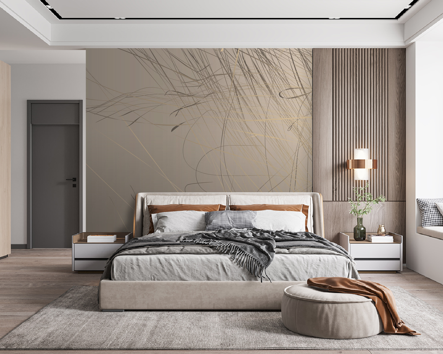 Stel je voor dat je een kamer binnenloopt en dit op de muur ziet – “Wow”, toch? Deze muurschildering, met abstracte lijnen die dansen op een zachte beige achtergrond, straalt bijna elegantie uit. Het is precies het soort kunstwerk dat niet schreeuwt, maar wel opvalt. Perfect voor iedereen die gewone muren te gewoon vindt. Je zou het prachtig vinden in een woonkamer of zelfs een chique studioruimte. Het is alsof je een vleugje creativiteit toevoegt zonder een verfkwast op te tillen. Stel je een late namiddag voor, het zonlicht dat naar binnen druppelt en die lijnen precies op het juiste moment raakt – instant zen.