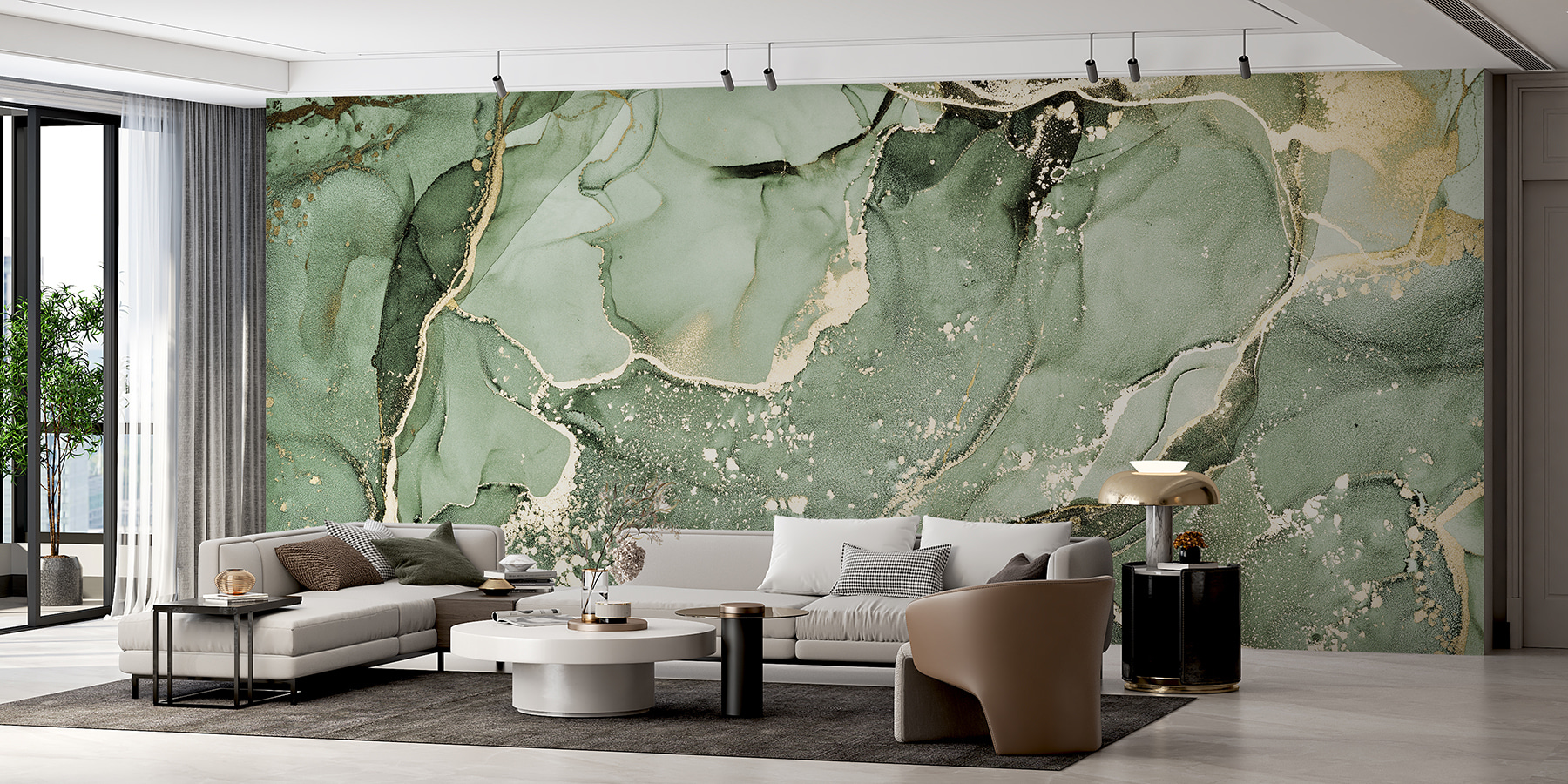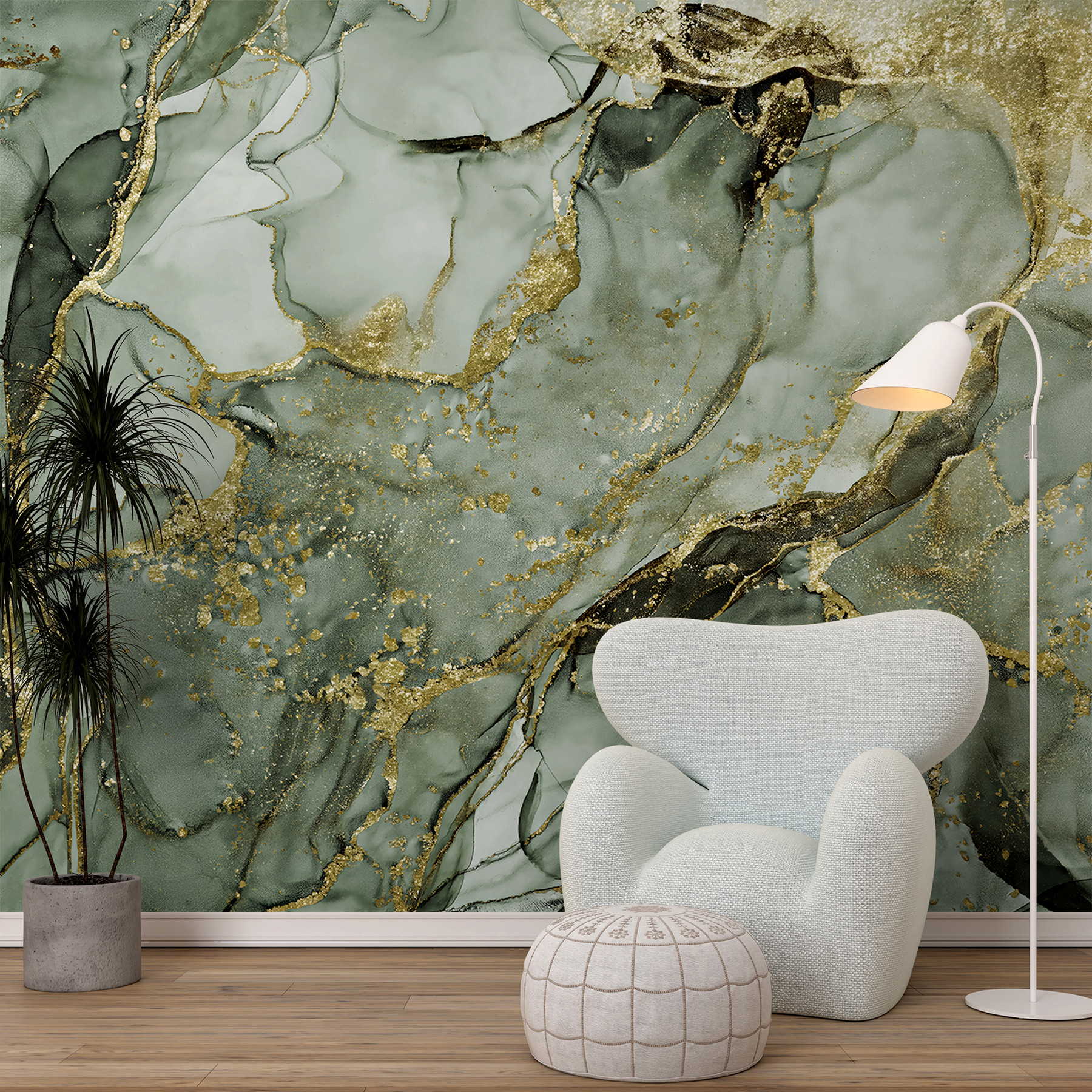 Verander elke ruimte in een serene ontsnapping met deze abstracte groene marmeren muurschildering. Het is alsof je een stukje natuur in huis haalt, maar dan zonder modder en ongedierte. Het zachte groen wervelt en danst en nodigt je uit om te ontspannen na een lange dag. Zie het voor je in een gezellig leeshoekje of zelfs als een opvallende achtergrond in je eethoek. Vrienden zullen stoppen en bewonderen, zich afvragend hoe je zo’n chique uitstraling hebt gekregen. Bovendien heeft het die perfecte mix van elegantie en aardsheid, waardoor elke kamer fris en uitnodigend aanvoelt. Wie wist dat kunst zo goed kon voelen?