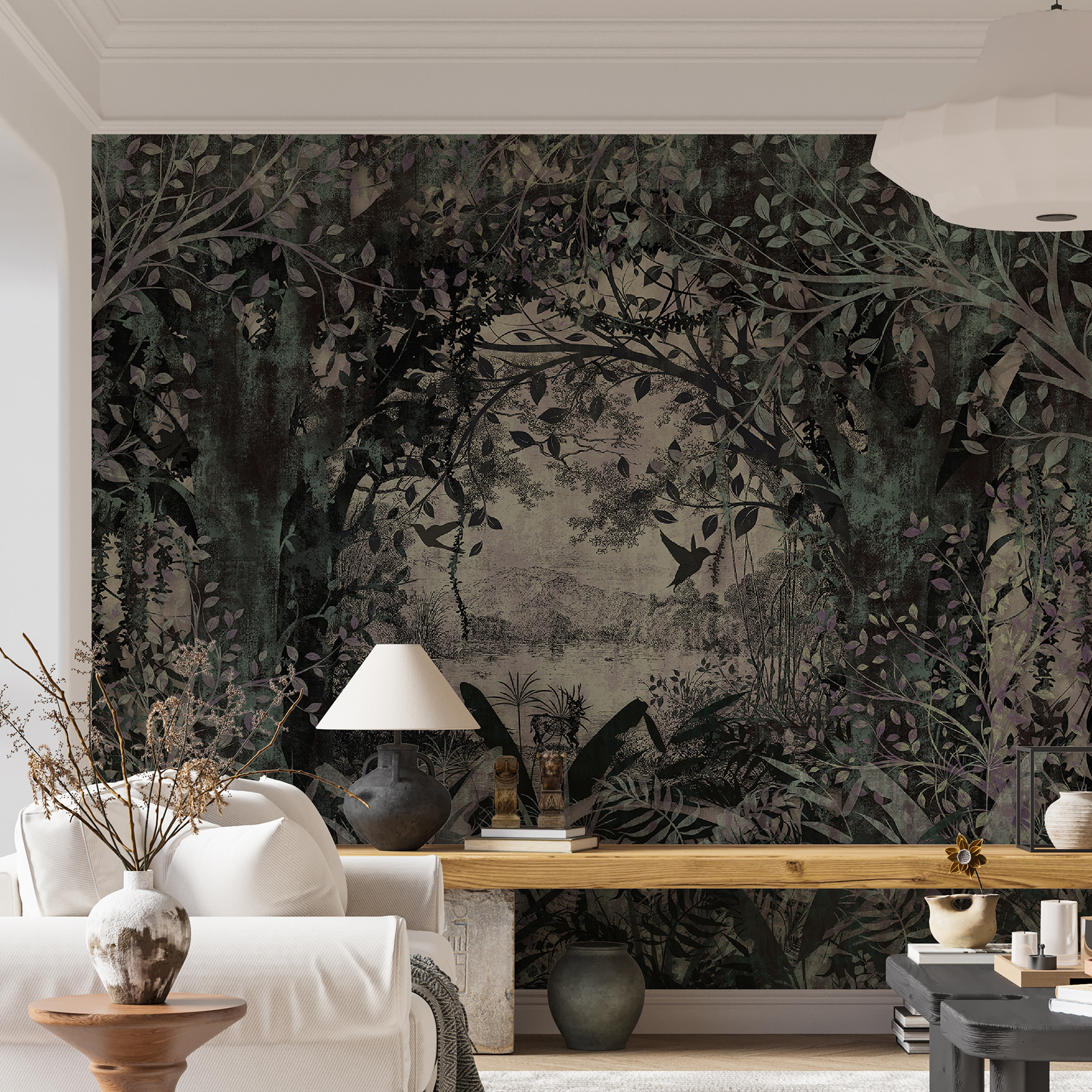 Wil je je kamer omtoveren tot een magische schuilplaats? Dan is “Enchanted Forest”, een abstracte muurschildering omlijst door weelderig gebladerte, precies wat je zoekt! Stel je voor dat je je kamer binnenloopt en wordt meegevoerd naar een dromerig bos vol mysterie en verwondering. Deze muurschildering combineert aardse bruintinten en diepe groentinten met een vleugje eigenzinnigheid, waardoor het perfect is voor iedereen die houdt van een mix van eigentijdse stijl met een vleugje betovering. Het is net alsof je je eigen Narnia hebt, zonder de pratende dieren natuurlijk. Ideaal voor een gezellige leeshoek, een rustgevende slaapkamer of zelfs om een beetje magie toe te voegen aan je woonkamer. Met dit aan je muur voelt het alsof je elke dag aan een nieuw avontuur begint.