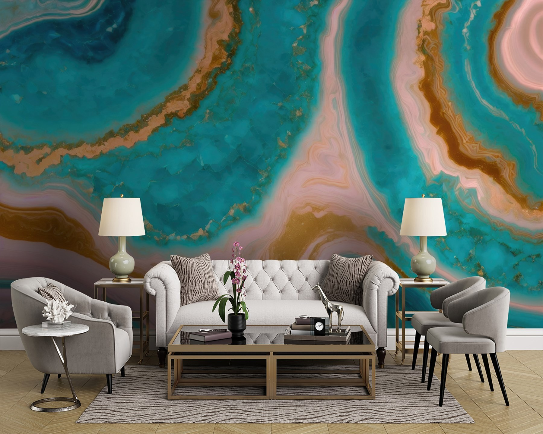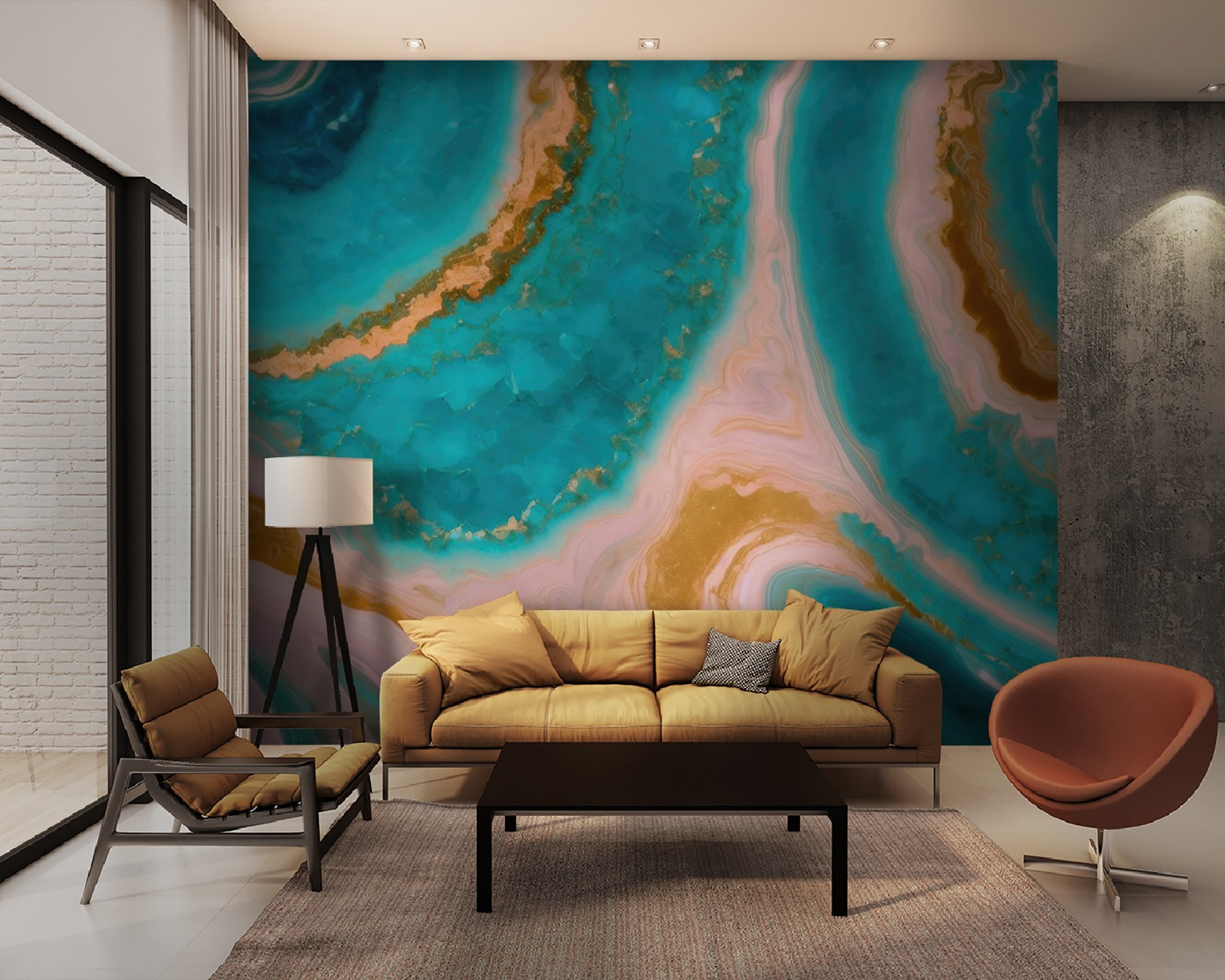 Transformeer je ruimte met deze levendige muurschildering met een betoverend blauw en oranje gemarmerd oppervlak. Stel je voor dat je een kamer binnenloopt die aanvoelt als een zeebriesje op een warme dag. De vloeiende patronen en wervelende kleuren creëren een dromerige sfeer die creativiteit kan aanwakkeren of gewoon een rustgevende achtergrond kan bieden om te ontspannen. Het is niet alleen decor; het is een gespreksstarter en een sfeermaker. Vrienden zullen misschien even stoppen en staren, zich afvragend waar je zo’n uniek stuk hebt gevonden. Elke blik biedt een nieuwe sensatie, alsof de muurschildering leeft. Perfect voor elke kamer die hunkert naar wat artistieke flair!