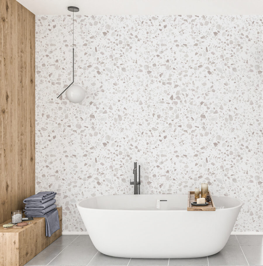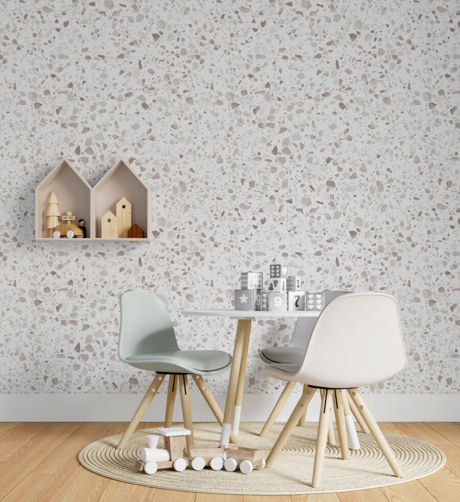 Verander elke kamer in een moderne oase met deze wit gespikkelde terrazzo muurschildering. Stel je voor dat je je favoriete café binnenstapt of een funky kunstgalerie – het heeft die sfeer! De speelse spikkels dansen over een zachte achtergrond en creëren een moeiteloos gevoel van stijl. Stel je voor dat je elke dag wakker wordt met deze frisse look. Ideaal om een saaie ruimte op te fleuren of een statement te maken zonder te schreeuwen. Perfect voor een gezellig leeshoekje of die lege muur die om wat liefde smeekt. Bovendien is het verwijderbaar, dus je hoeft er geen vakman bij te halen. Makkelijk, leuk en ziet er geweldig uit – wat is er niet leuk aan?