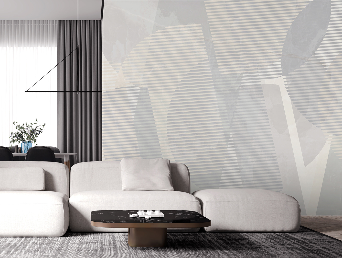 Verfraai je leefruimte met de “Muurschilderingen Abstracte lijnen en geometrische vormen”. Perfect voor wie houdt van een moderne, kunstzinnige vibe. Deze muurschildering combineert rustgevende tinten en strakke lijnen en voegt een vleugje verfijning toe zonder te in-your-face te zijn. Stel je eens voor dat je wakker wordt en het gevoel hebt dat je kamer een vleugje galerie heeft – heel cool, toch? Het is geweldig om een centraal punt in elke kamer te creëren, een beetje alsof je je eigen moderne kunstwerk hebt. Bovendien zit het in populaire categorieën zoals Abstract, Geometrisch en Designer behang, dus je weet dat je bij de tijd bent. Of je nu de woonkamer, een gezellig hoekje of zelfs je kantoor opknapt, het abstracte ontwerp van deze muurschildering zal zeker tot interessante gesprekken leiden en misschien zelfs een beetje afgunst bij bezoekers!