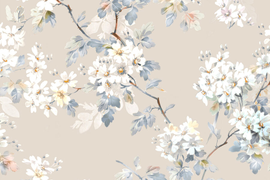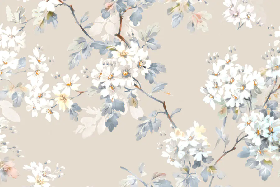 Heb je een kale muur die schreeuwt om wat persoonlijkheid? Zeg hallo tegen deze delicate bloemenmuurschildering! Breng de rust en schoonheid van de natuur naar binnen. Stel je zachte, pastelkleurige bloesems en bladeren voor die sierlijk dansen op een zachte beige achtergrond. Het is net een rustige wandeling door een bloeiende tuin – zonder dat je schoenen modderig worden!