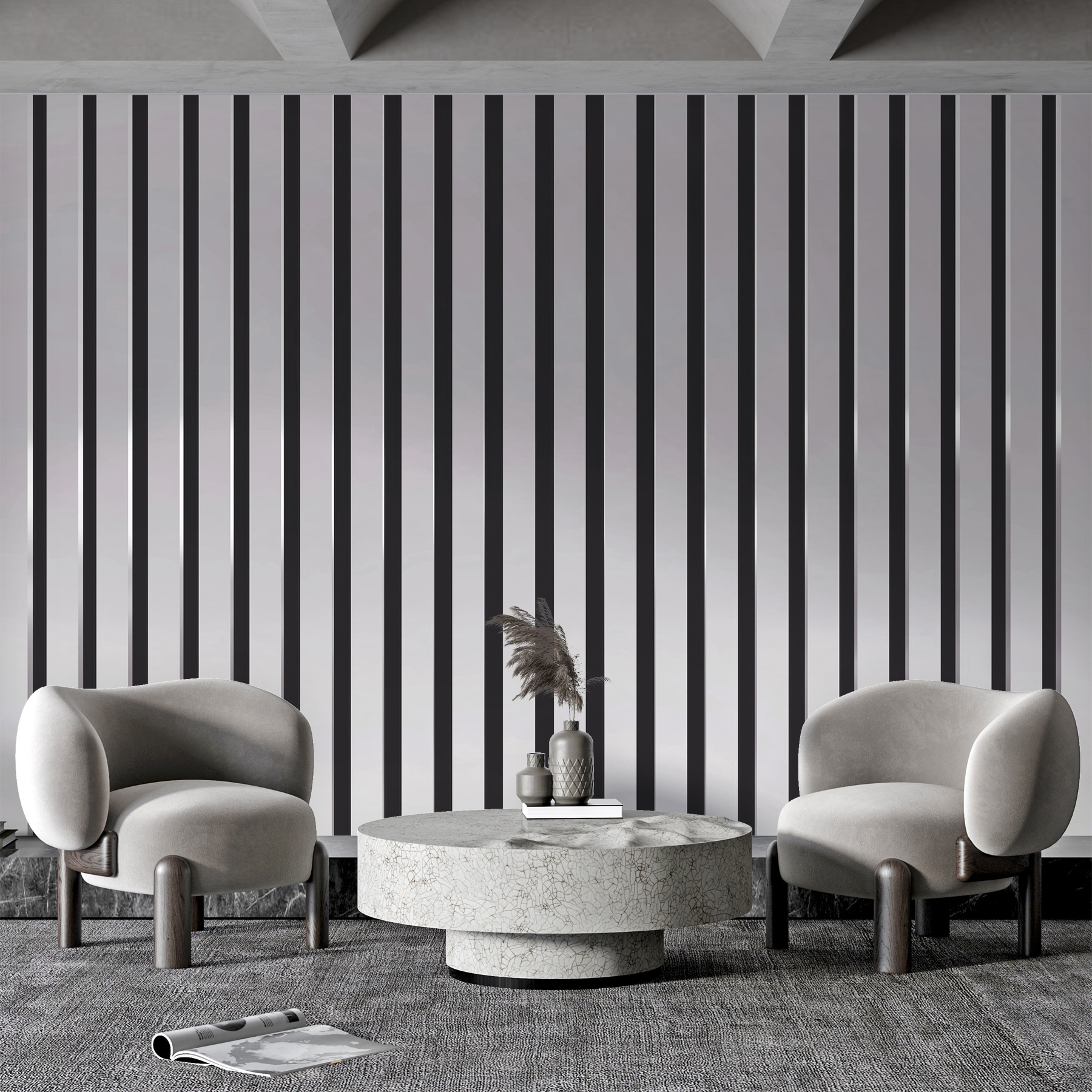 Bekijk deze betoverende muurschildering “Zwart Wit Gestreepte Hek”. Het is een combinatie van tijdloos zwart en wit met een moderne, strakke uitstraling. Stel je dit eens voor in je woonkamer-bam, instant raffinement! De strepen? Oh, dat zijn niet zomaar strepen; ze brengen een chique, bijna hypnotiserend ontwerp dat elke effen muur stijlvol kan laten stralen.