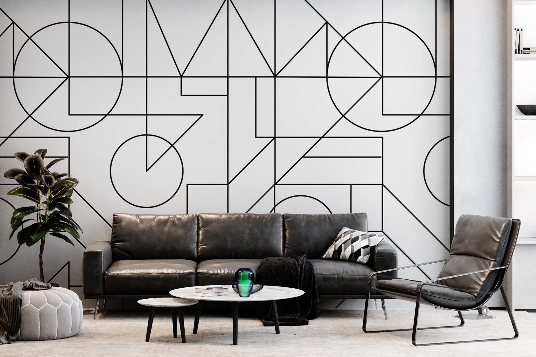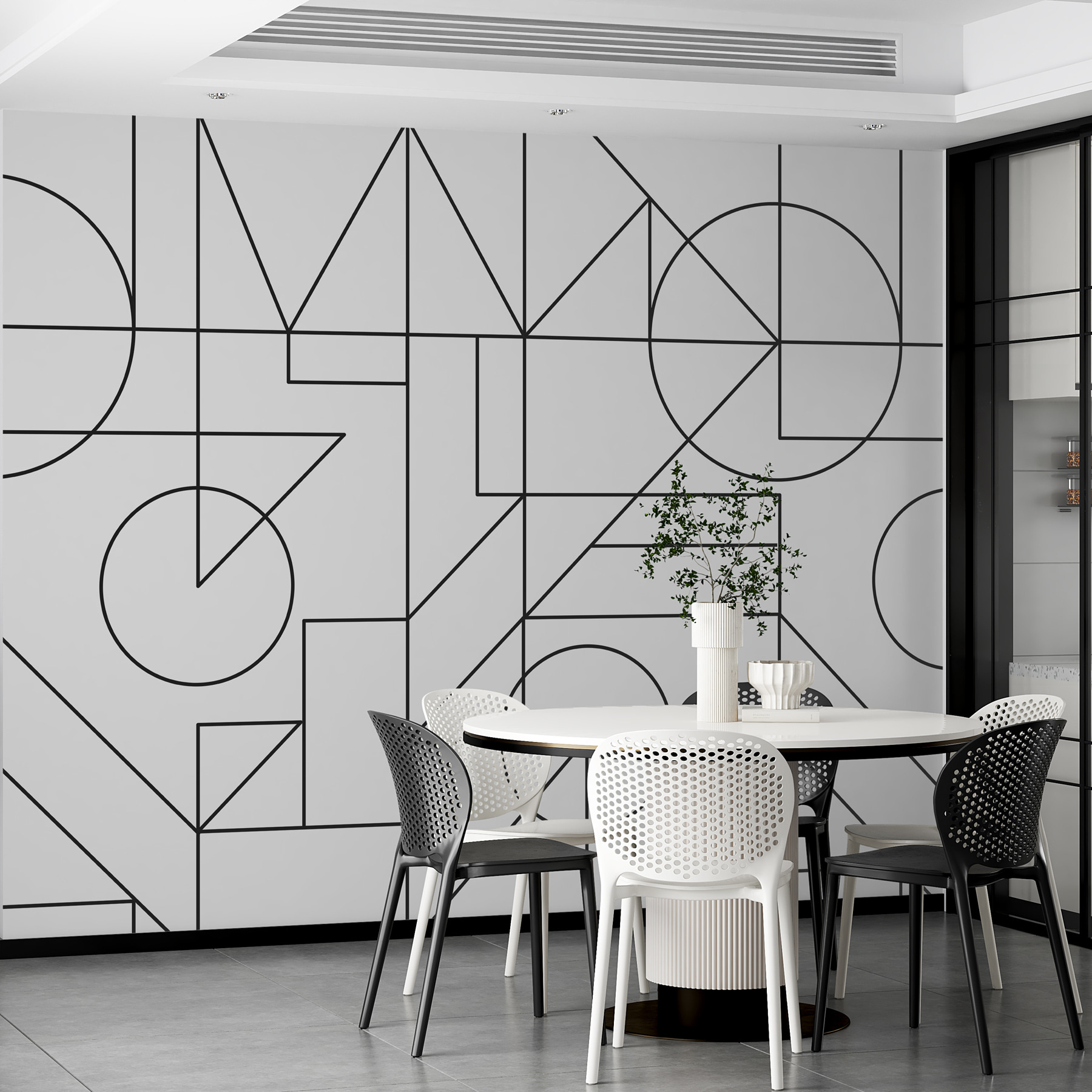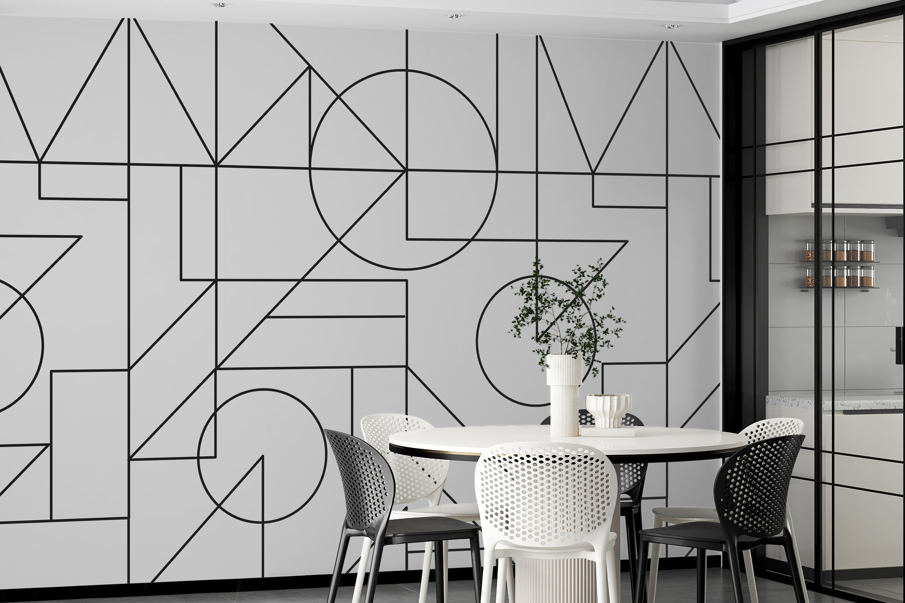 Het is geweldig voor elke ruimte, of het nu je woonkamer, kantoor of zelfs die kale hal is die schreeuwt om wat liefde. Het zwart-witte kleurenschema? Puur klassiek. Het past moeiteloos bij elke interieurstijl. Bovendien hebben geometrische ontwerpen iets rustgevends – ze brengen orde en evenwicht, bijna alsof ze je steunen in deze chaotische wereld. Dus ga je gang, laat deze muurschildering je muur omtoveren tot een meesterwerk.