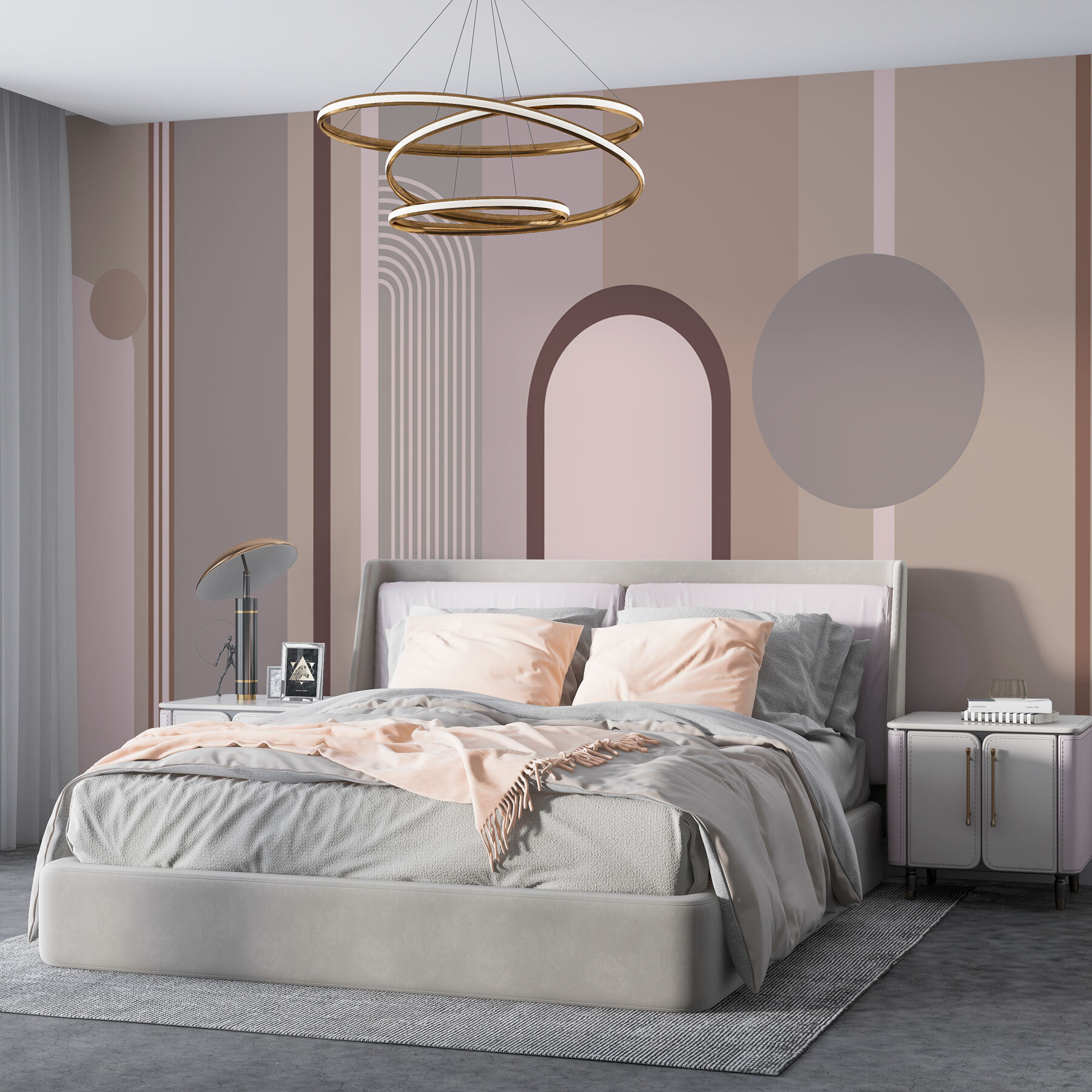 Bekijk deze prachtige geometrische muurschildering in pasteltinten. Het is net een serene dagdroom gevangen in vormen en kleuren! Perfect om een moderne sfeer te creëren zonder je ruimte te overweldigen. Zachte lijnen, strepen en cirkels komen samen in de mooiste beige, grijze en gedempte tinten. Stel je voor dat je ‘s ochtends aan je koffie nipt en je ogen laat dwalen over deze rustgevende patronen… zalig, toch? Deze muurschildering is alsof je je eigen abstracte kunstgalerie thuis hebt. Het is subtiel maar stijlvol, en het geeft een ontspannen, eigentijds gevoel dat elke kamer gezellig en chic maakt. Of het nu je woonkamer, slaapkamer of zelfs een creatieve kantoorruimte is, deze muurschildering straalt persoonlijkheid uit. Je muren versieren met deze schoonheid voelt bijna therapeutisch, een zacht duwtje in de rug om te genieten van de eenvoudige, elegante dingen.