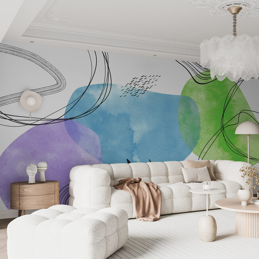 Het is perfect voor de momenten waarop je achterover wilt leunen, ontspannen en in gedachten verzonken wilt raken. De kleuren zijn rustgevend en geven je die “alles komt goed”-sfeer, maar er is ook die coole, kunstzinnige touch die je ruimte superstijlvol maakt zonder te veel moeite te doen. Stel je voor dat je vrienden op bezoek krijgt en ze allemaal zeggen: “Wow, hoe kom je aan die muurschildering?”. Het is een gespreksstarter, een sfeermaker en een kunstwerk in één.