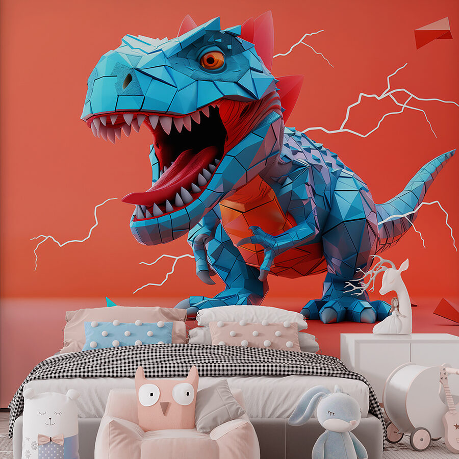 De opvallende rode achtergrond laat de blauwe geometrische dinosaurus moeiteloos knallen. Het is bijna alsof je hem kunt horen brullen! Geweldig om diepte en opwinding toe te voegen aan elke ruimte, of het nu een gedurfde woonkamer, een avontuurlijke kinderslaapkamer of een eigenzinnig kantoor is.