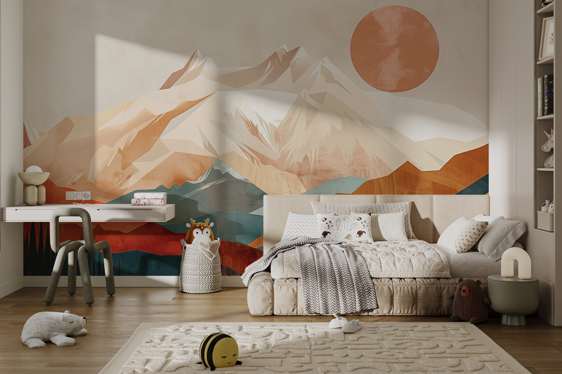 Ooit gewenst dat je elke dag wakker kon worden met een uitzicht op de bergen? Nou, met “Fotobehang w01358” zit je goed! Het is alsof je in een abstracte droom stapt – vette pieken die de hemel lijken te raken, een warme zon die zweeft in een wazige, serene lucht… Alleen er al naar staren kan je het gevoel geven dat je op een mini-vakantie bent. Perfect voor iedereen die van de natuur houdt, maar toch die eigentijdse, kunstzinnige vibe wil. Stel je dit eens voor in je woonkamer of zelfs je kantoor – het brengt het buitenleven naar binnen op zo’n stijlvolle, rustgevende manier. Perfect om een inspirerende ruimte met uitzicht te creëren… zonder al het reizen!