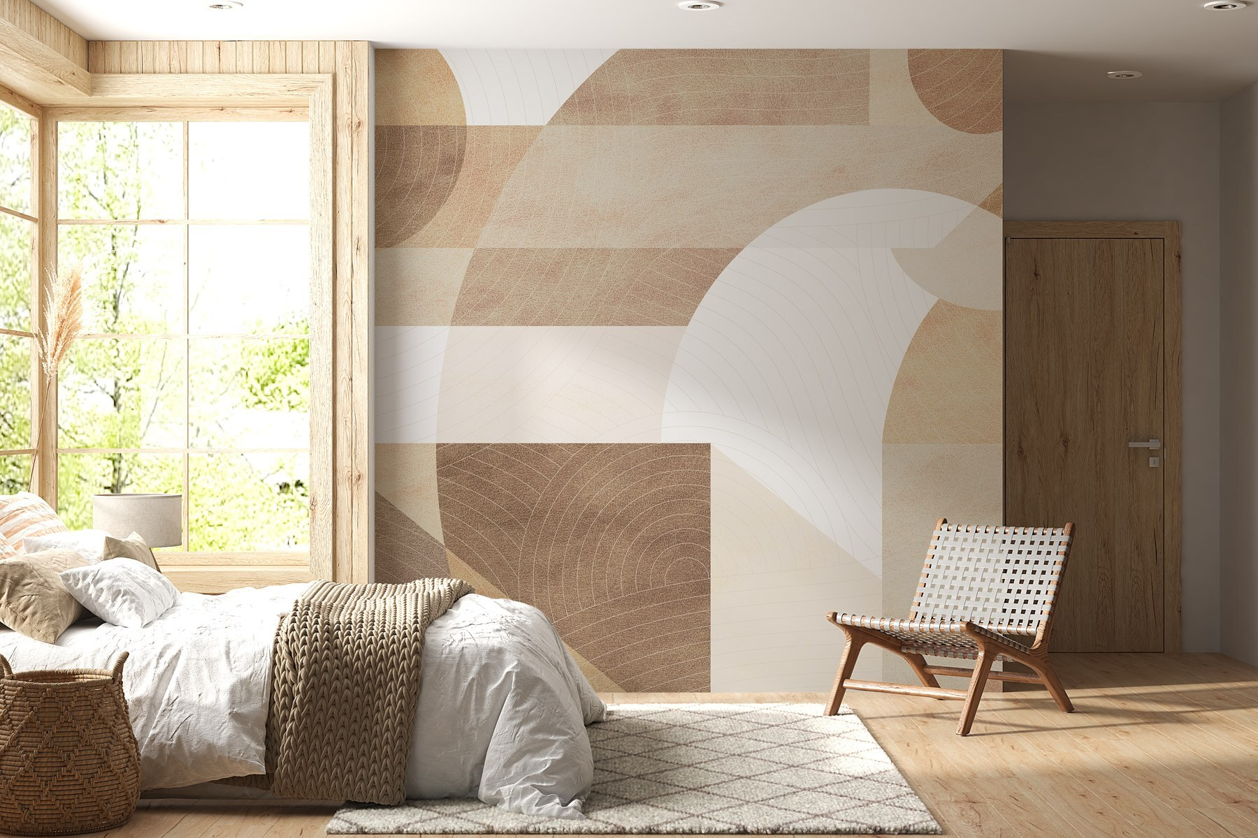 Verander een gewone kamer in een gezellig toevluchtsoord met deze prachtige muurschildering. “Abstracte vormen en zachte tinten mengen zich” voelt als een zachte knuffel voor je muren, waarin aardse kleuren samenkomen die rust uitstralen. Stel je voor dat je ‘s ochtends aan je koffie nipt terwijl je die vloeiende lijnen en zachte rondingen in je opneemt, net als kunst die gewoon leuk is om naar te kijken. Het is perfect om een serene ruimte te creëren waar stress als het ware wegsmelt. Vrienden zullen je misschien vragen of je een ontwerper hebt ingehuurd en jij kunt glimlachen, helemaal cool en verzameld, denkend dat het gewoon een muurschildering was. Want wie houdt er nu niet van een beetje huisnijd af en toe?
