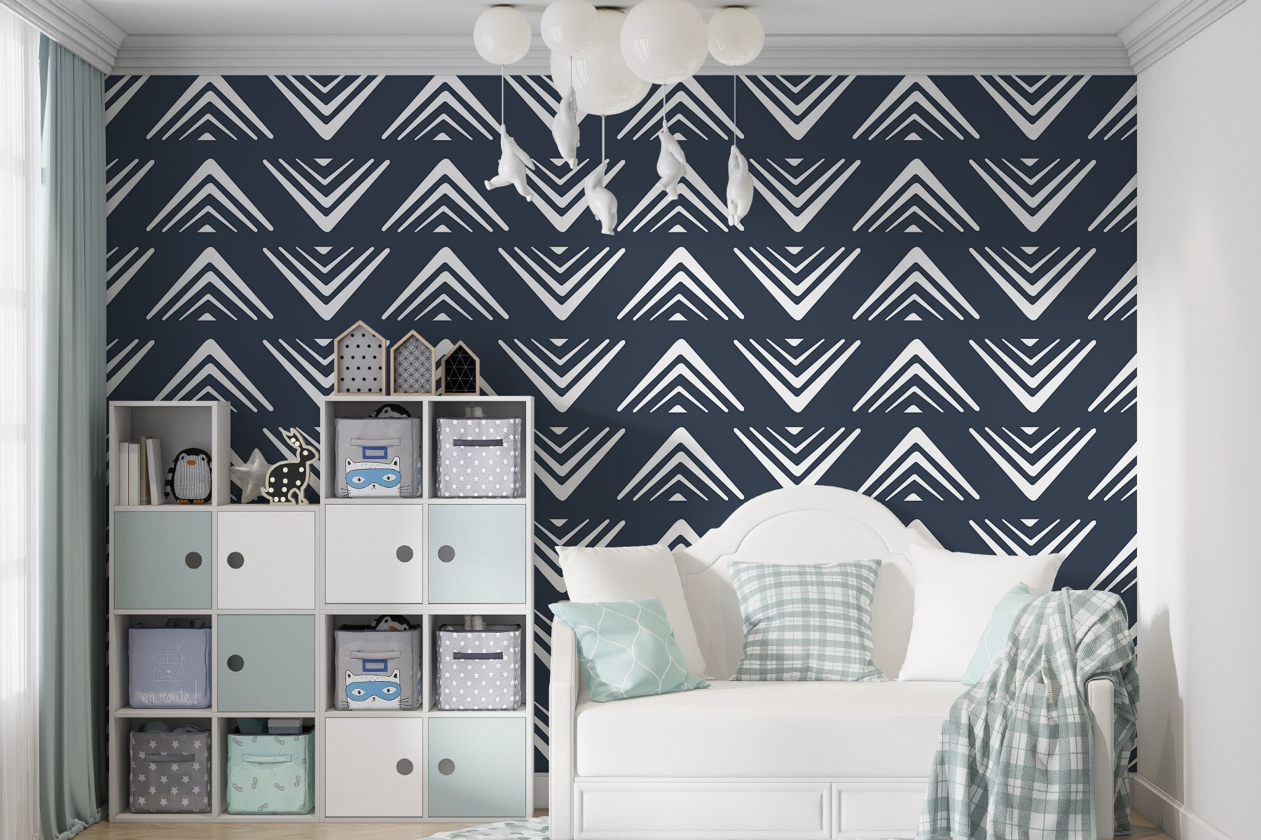 Transformeer je ruimte met de “Fotobehang Pattern of Triangles”. Dit ontwerp is als een geheime gespreksstarter – stel je voor dat gasten de strakke, geometrische sfeer bewonderen terwijl ze koffie drinken. De scherpe witte driehoeken knallen tegen een diep marineblauwe achtergrond en creëren een ritme dat over je muren danst. Het is gedurfd en toch rustgevend, precies de juiste balans voor een gezellige woonkamer of een chique kantoor. Stel je voor dat je in een stoel wegzakt met deze muurschildering achter je en je geïnspireerd en energiek voelt. Serieus, wie heeft er kunstgalerieën nodig als je muren al het woord kunnen doen? Een vleugje eigentijdse flair dat niet alleen decoratief is, maar je hele sfeer verbetert!