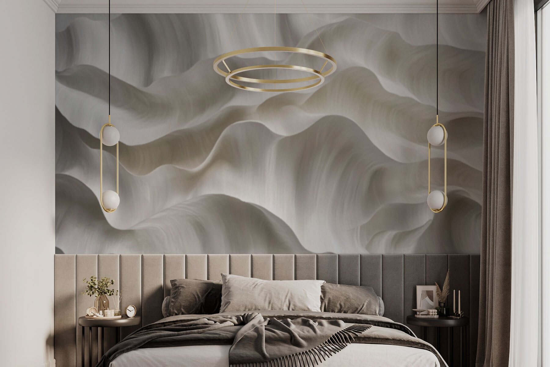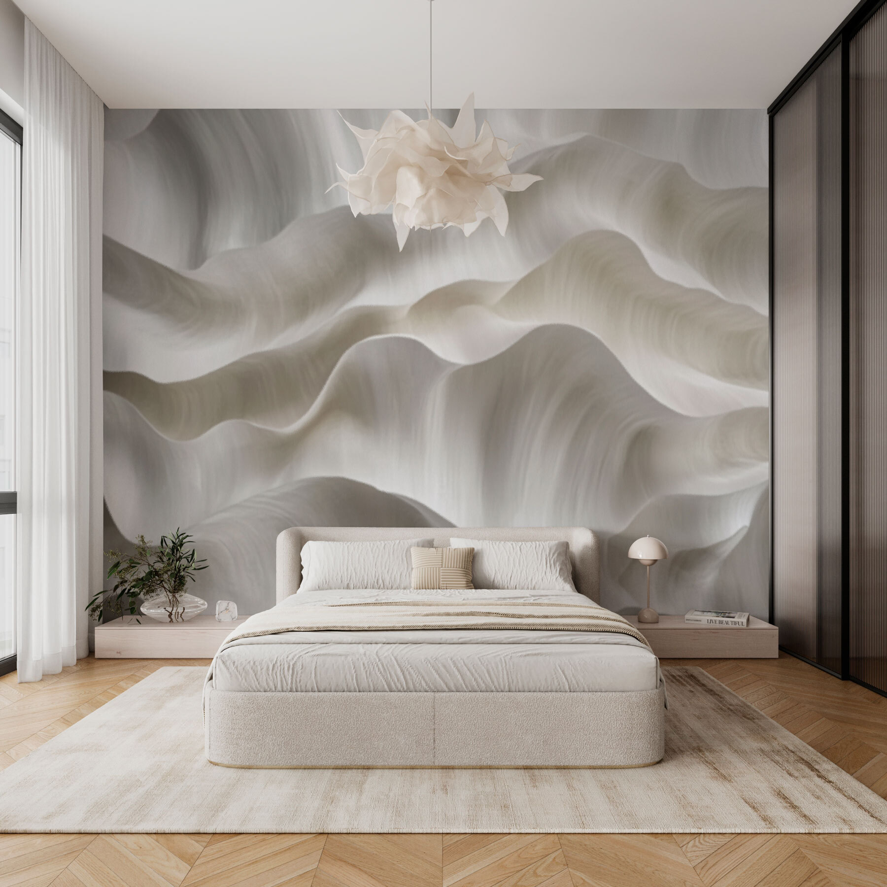Transformeer je ruimte in een serene ontsnapping met de muurschildering “Soft Waves of Textured White Layers”. Stel je voor: je loopt een kamer binnen waar golvende golven van zacht wit je uitnodigen om te ontspannen – het is als een diepe ademhaling voor je muren. Dit stuk danst tussen eenvoud en diepte, waardoor het perfect is voor zowel gezellige hoekjes als open woonkamers. De zachte beweging die het ontwerp oproept, kan aanzetten tot gesprekken of gewoon tot rustgevende dagdromen. Stel je voor dat je lekker wegkruipt met een boek, terwijl de muurschildering een achtergrond biedt die zowel rustgevend als verfrissend licht aanvoelt. Het is meer dan decor; het is een stemming. Perfect voor mensen die geloven dat minder vaak meer is en die kunst waarderen die fluistert in plaats van schreeuwt.