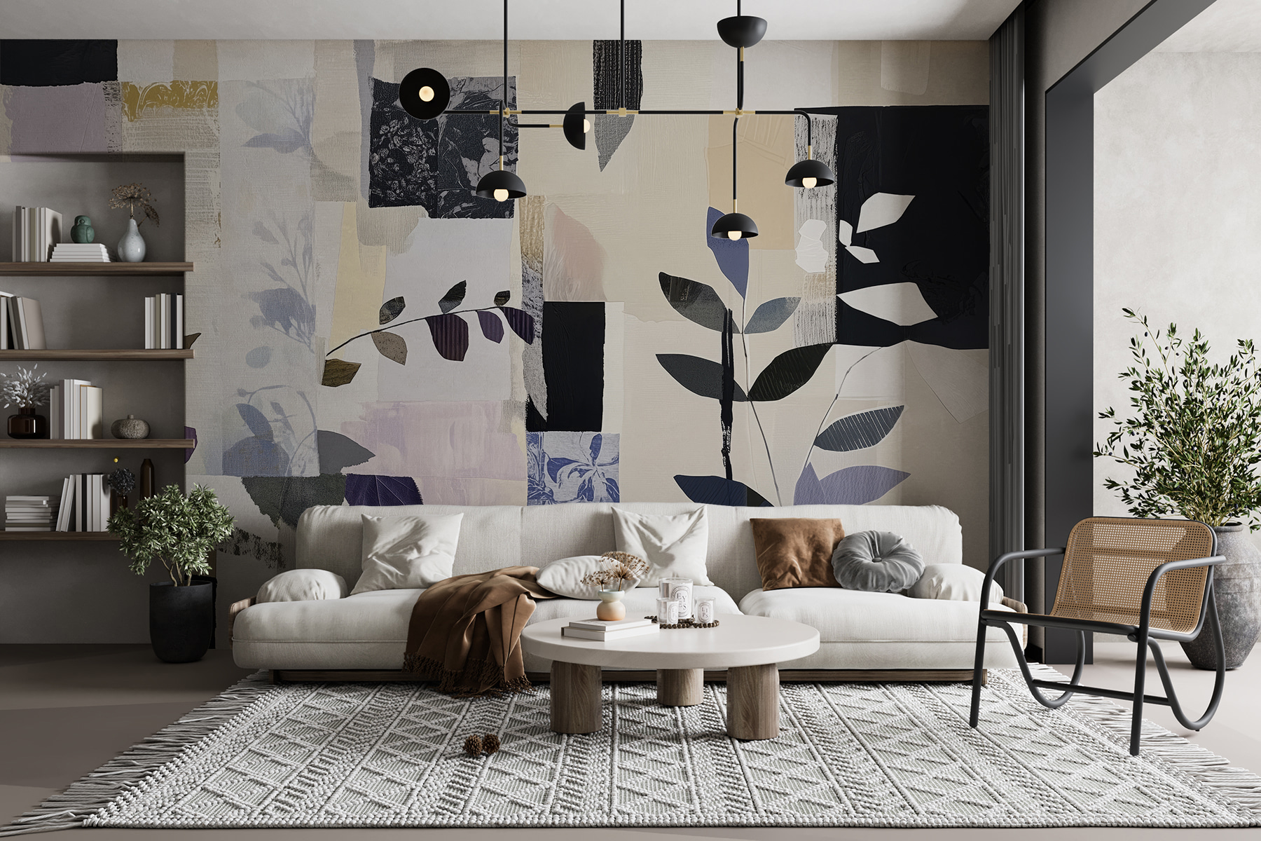 Deze muurschildering, “Painting of Leaves and Squares”, is als een eigenzinnige vriend die er op de een of andere manier in slaagt om verschillende patronen tegelijk te mengen – heel verfrissend! Elk blad en vierkant lijkt zijn eigen kleine avontuur te beleven en creëert een serene en toch kunstzinnige sfeer. Stel je dit eens voor in je woonkamer, om gesprekken op gang te brengen of gewoon om rustig te ontsnappen. Door de neutrale tinten voelt het knus aan, als een warme kop thee op een regenachtige dag. Perfect voor iedereen die houdt van een vleugje eigentijdse flair zonder te overdrijven.