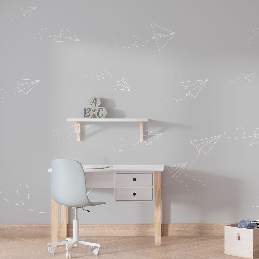Stel je deze muurschildering voor, met een zwerm papieren vliegtuigjes die speels door je ruimte zweven. Perfect voor mensen die opkijken van hun koffie en denken: “Ik kan wel wat avontuur gebruiken”. Elk vliegtuigje lijkt zijn eigen brutale verhaaltje te hebben, alsof ze op geheime missie zijn om vrolijkheid in je woonkamer te brengen. Dit stuk schreeuwt charme uit terwijl het minimalisme fluistert; het draait allemaal om evenwicht, toch? Verander elke kamer in een vrolijke speelruimte voor je ogen, want muren verdienen ook plezier.