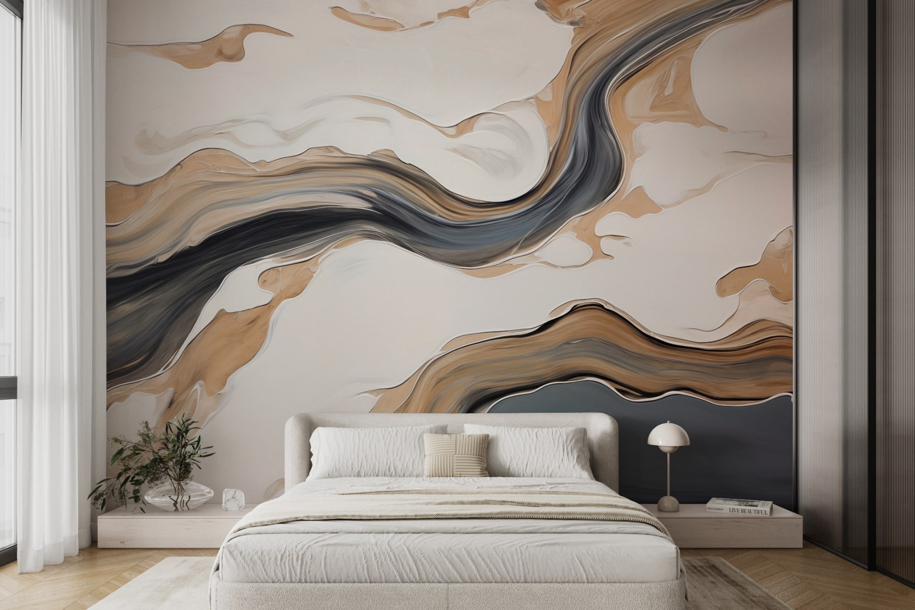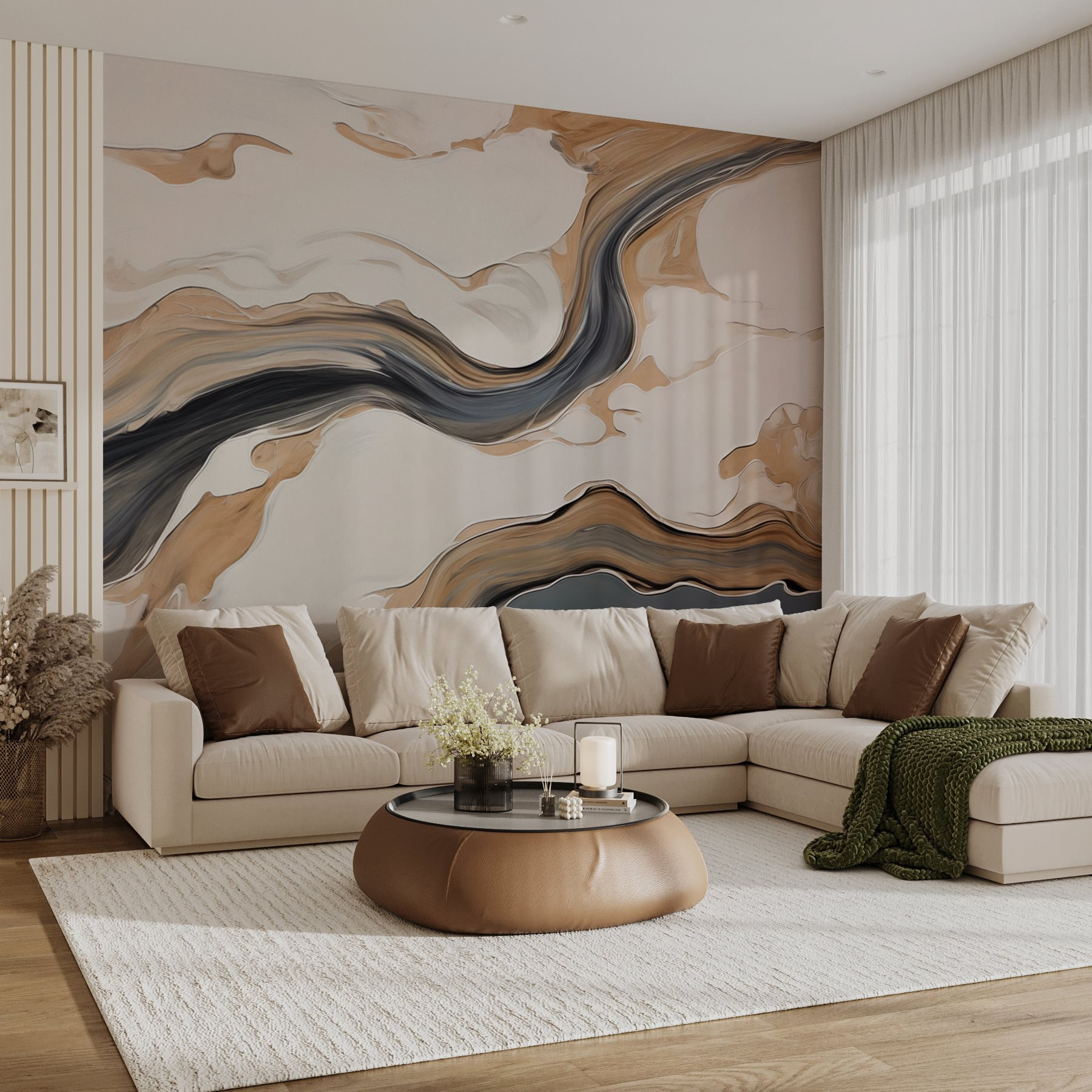 Transformeer elke kamer met deze fascinerende muurschildering met wervelingen van zwart en zachte tinten op een heldere achtergrond. Het voelt alsof je een dromerige abstracte wereld binnenstapt: het ene moment bewonder je het kunstwerk, het volgende moment spreekt je verbeelding aan. Stel je gezellige avonden voor, opgekruld met een boek, je muren die creativiteit en rust uitstralen. Het is alsof je een kunstwerk hebt dat uitnodigt tot gesprek en verwondering. Deze muurschildering is perfect voor mensen die hunkeren naar een beetje flair zonder de zintuigen te overweldigen en verheft moeiteloos elke ruimte, waardoor het voelt als een thuis.