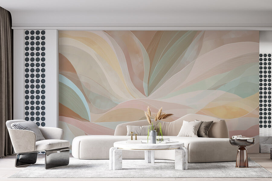Transformeer elke kamer met deze levendige muurschildering met kleurrijke zwierige lijnen op een warme bruine achtergrond. Stel je voor dat je een gezellige ruimte binnenstapt die vrolijk en toch rustgevend aanvoelt – dit ontwerp brengt die sfeer moeiteloos over. De vloeiende vormen voelen als een zacht briesje en nodigen uit tot ontspanning en creativiteit. Deze muurschildering is perfect voor een woonkamer of een dromerige slaapkamer en kan zelfs een paar dagdromen opwekken. Het is als een knuffel voor je muren, die je inrichting subtiel opvrolijkt zonder te schreeuwerig te zijn. Wie wist dat muren zo’n persoonlijkheid konden hebben?