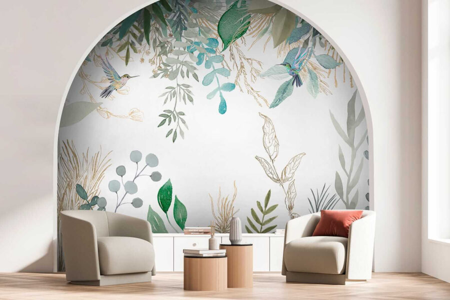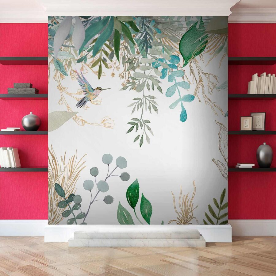 Stel je voor dat je thuiskomt en al je stress verdwijnt. De “Fotobehang Hummingbirds amidst lush foliage illustration” transformeert elke kamer in een serene, op de natuur geïnspireerde retraite. Het is alsof je je eigen stukje regenwoud in je woonkamer hebt. De delicate kolibries fladderen door weelderig gebladerte, geschilderd in dromerige aquarellen die je hart zullen laten zingen. Perfect voor iedereen die houdt van bloemen, gebladerte of gewoon een vleugje natuurschoon. Hang het op en zie hoe je ruimte plotseling levendig en veel levendiger aanvoelt. Het is niet zomaar een muurschildering, het is een ontsnapping, een mini-vakantie, een dagelijkse herinnering aan de magie van de natuur. En wie heeft daar nou geen behoefte aan?