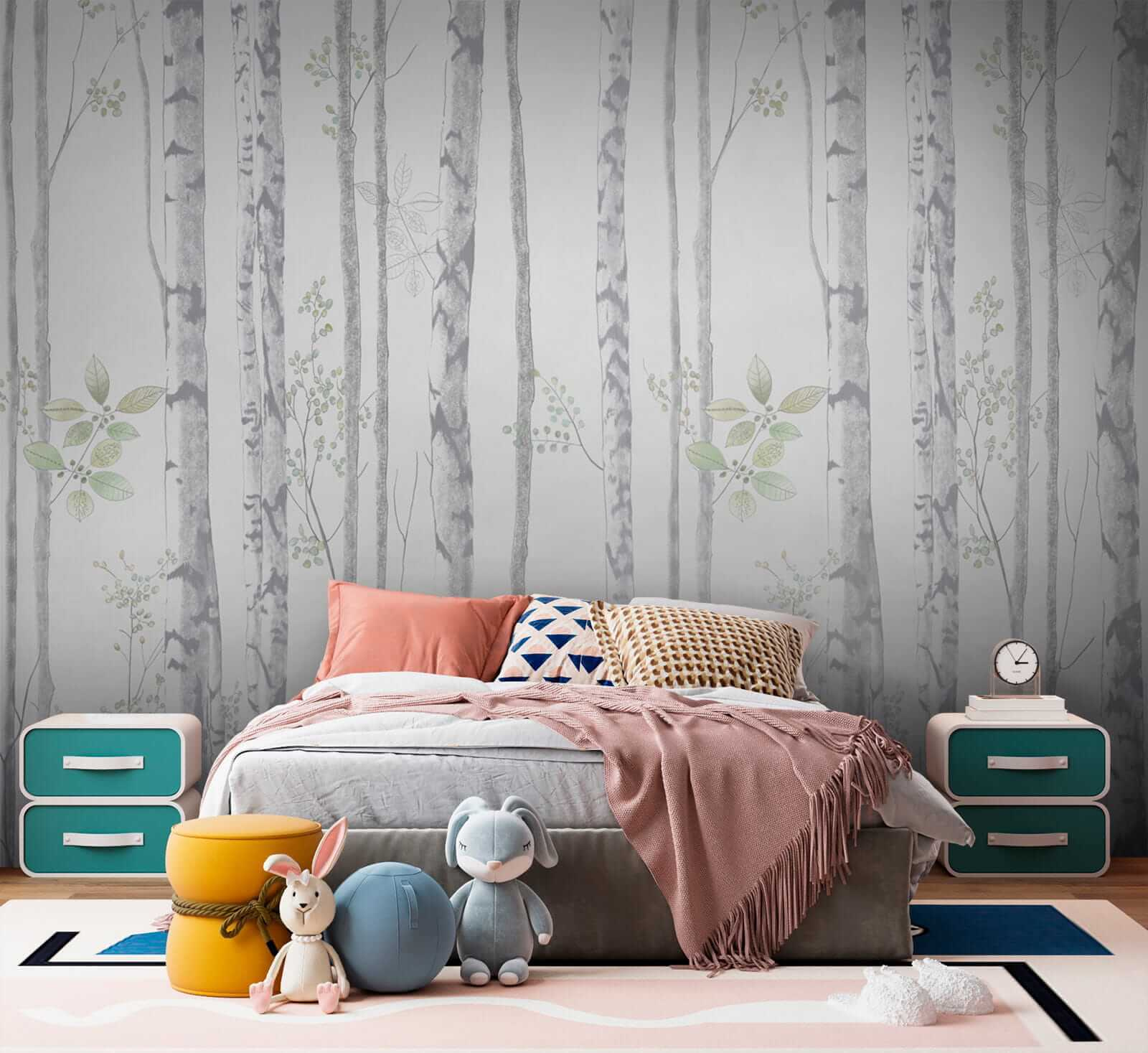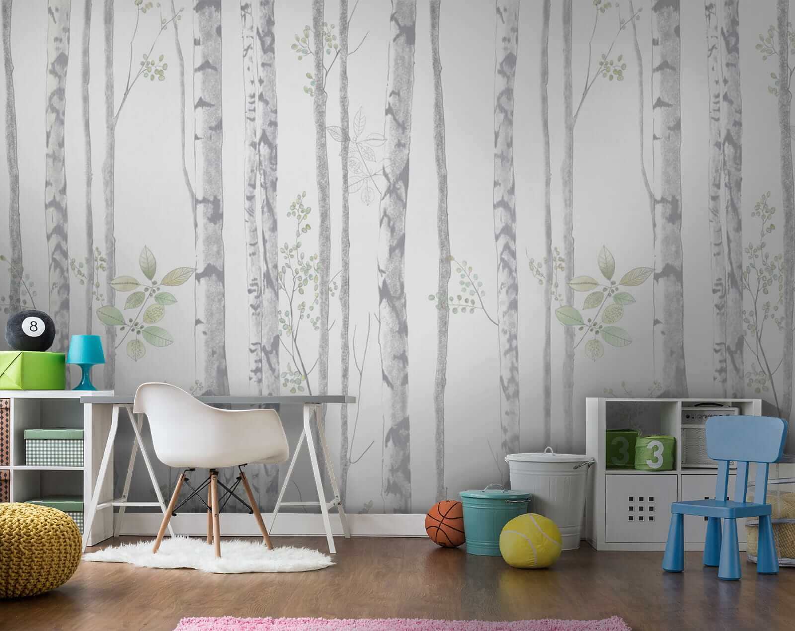 Transformeer elke ruimte met de betoverende muurschildering van berkenbomen met zachtgroene bladeren. Stel je voor dat je een vredig bos binnenstapt, waar de natuur fluistert en het zonlicht door de bladeren danst. Dit ontwerp brengt een serene sfeer, perfect voor een kinderkamer of een gezellig leeshoekje. De zachte kleuren bieden een verfrissend contrast met de muren en geven een licht, luchtig gevoel. Verhalen vertellen of dagdromen, het nodigt uit tot verbeelding. Stel je kinderen voor die giechelend verstoppertje spelen tussen de boomstammen – elke blik op deze bomen voelt als een kleine ontsnapping in de omarming van de natuur.