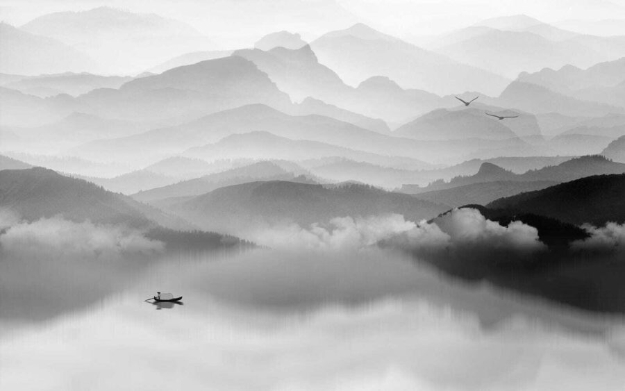 Ooit vanuit je woonkamer willen ontsnappen naar een sereen meer? Deze muurschildering zou wel eens de poort kunnen zijn! Stel je voor: een eenzaam bootje dat vredig dobbert, omringd door mistige bergen die zich eeuwig lijken uit te strekken… het is als een fluistering van de natuur, speciaal voor jou. Perfect om die rustige, zen vibe in je ruimte te brengen. Stel je voor dat je met een kopje thee zit en je ogen laat dwalen over die dromerige lagen bergen – het is elke dag net een minivakantie. Dit is niet zomaar een muurschildering, het is als een aquarelknuffel voor je muren. Dus, zin in een beetje rust? Dan is dit misschien wel het perfecte vleugje natuur waar je kamer naar hunkert!