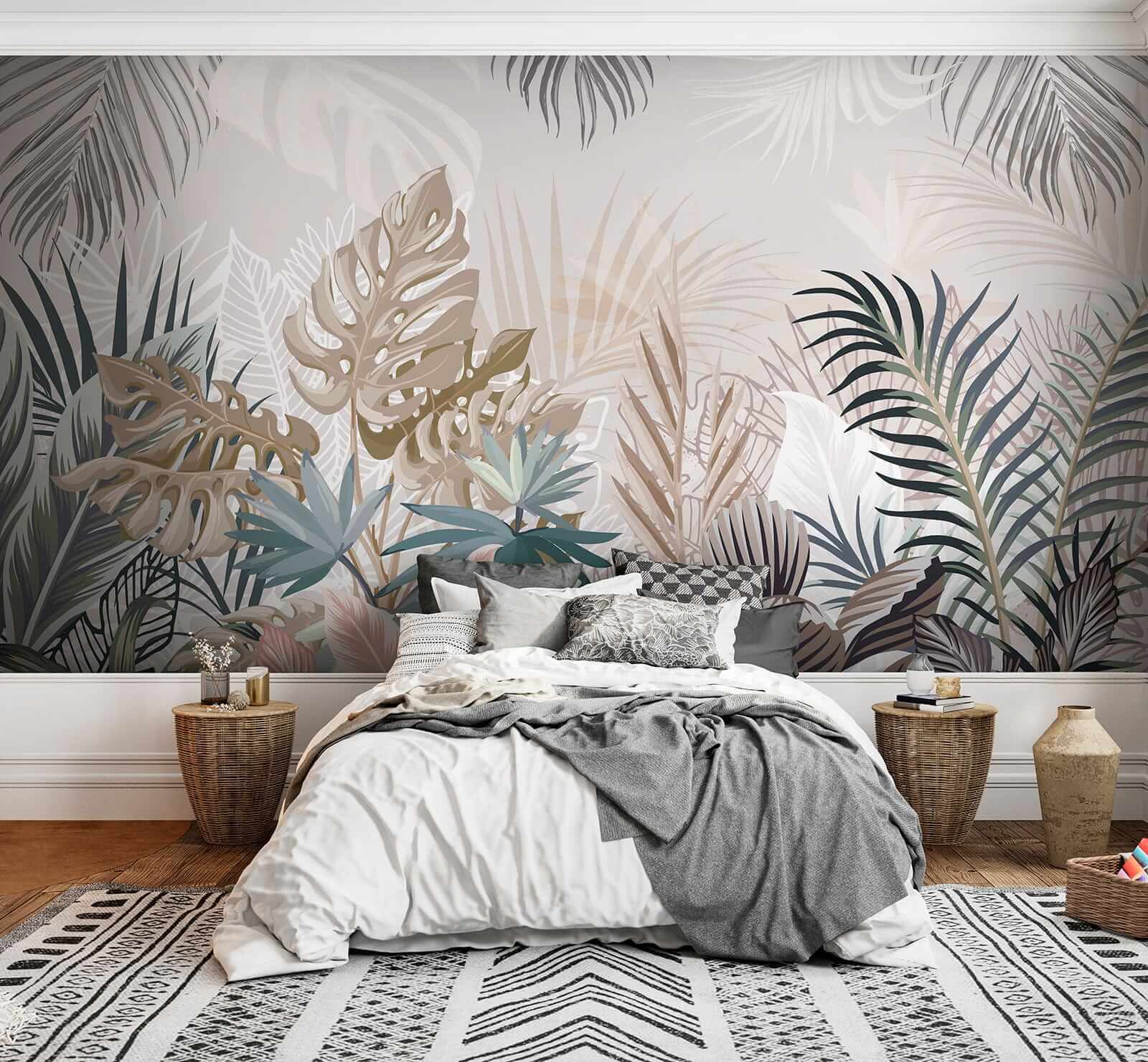 Wil je je ruimte een beetje opvrolijken? Deze muurschildering “Tropical Leaves in Muted Hues” is als een mini-vakantie voor je muren. Stel je voor dat je je woonkamer binnenloopt en het gevoel hebt dat je in een gezellig oerwoudverblijf bent. De zachte kleuren zijn super rustgevend – perfect voor die zen-sfeer. Bovendien heeft het dit coole aquareleffect waardoor het artistiek aanvoelt zonder al te in-your-face te zijn. Je voegt eigenlijk een kunstwerk toe aan je huis, maar dan zonder de ‘afblijven’-sfeer. Of je nu aan het chillen bent met een boek of vrienden op bezoek hebt, deze muurschildering zorgt ervoor dat alles meer… levendig aanvoelt! 🌿